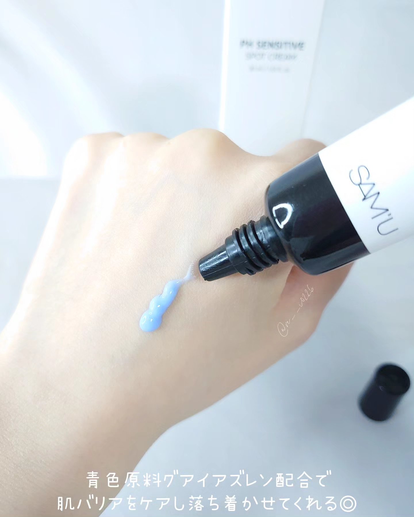 サミュさんから頂きました♡\PHSENSTIVESPOTCREAM/ユーカリの葉っぱ🌿から抽出されたグアイアズレン700ppm含有ブルーテクスチャーのクリーム💙スポット使いでもいいし顔全体に薄く伸ばすのもあり.ᐟ.ᐟ低刺激で肌のバリア機能を強...