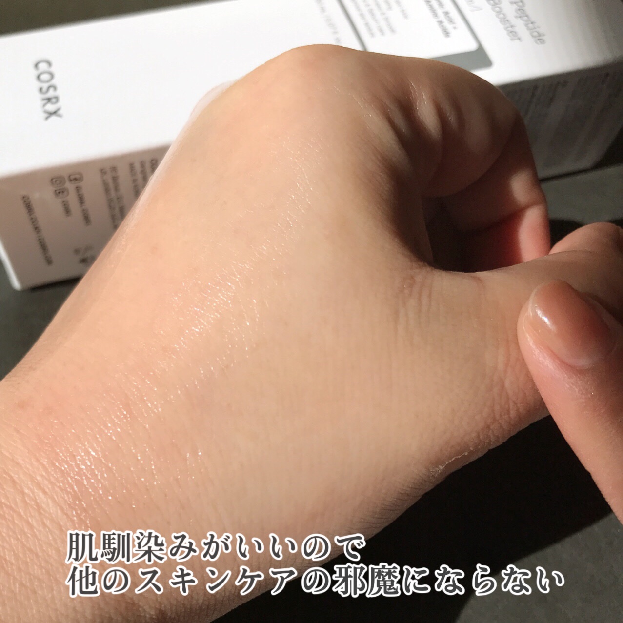 - 普段のスキンケアに1滴だけ! 肌荒れ予防からあらゆるエイジングケア*1を叶うスキンブースター。 ・COSRXが厳選した、それぞれ異なる効果の6種類のペプチド成分*2! それぞれ異なる効果の6種類のペプチド*2を1本に入れて毛穴ケア(乾燥による毛穴の開き、皮脂バランス)、肌のキメ、弾力、透明感、整肌、ハリなど肌のコンディションを整え、健やかに保ちます。 ・普段使っているトナーの後に! 普段使いのスキンケアにペアリングしやすいスキンブースターでトナーを塗った後、「一滴」を追加することで、次のステップ(セラム、アンプル、クリーム)のスペシャルスキンケア効果をしっかりサポートします。 ・素早く肌になじむ低刺激ウォータリーテクスチャー! お肌にやさしく低刺激な使い心地のスキンブースターでベタつきにくく、肌の角質層隅々まで素早くなじみます。 *1年齢に応じたお手入れ *2保湿成分