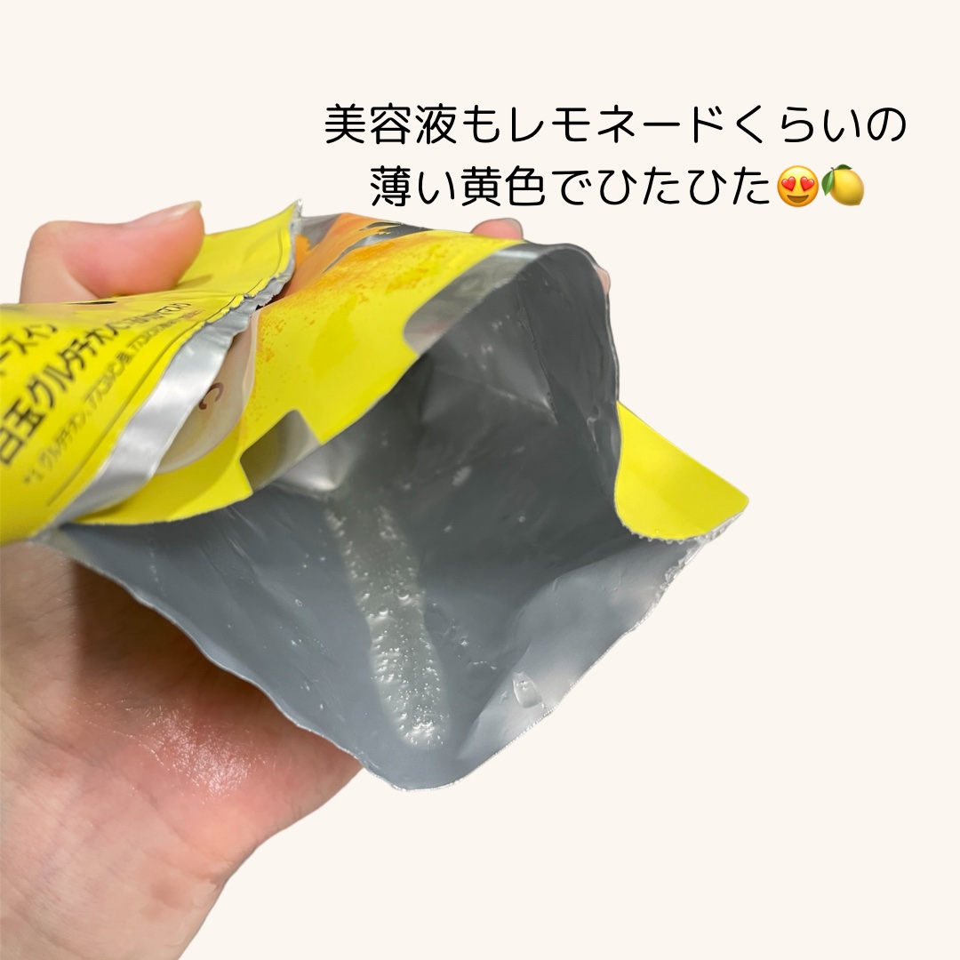 美白、くすみ、色素沈着ケア Lグルタチオン、ナイアシンアミド配合 高濃縮アンプルをたっぷり配合◎ まず開けてびっくり、真っ黄色のマスクに驚きます(((;꒪ꈊ꒪;))) 透明感や保湿感をより感じるトナーパッドの方がお気に入りですが、たくさん紫外線を浴びた日や集中的にケアしたい日はこっちかな🌿