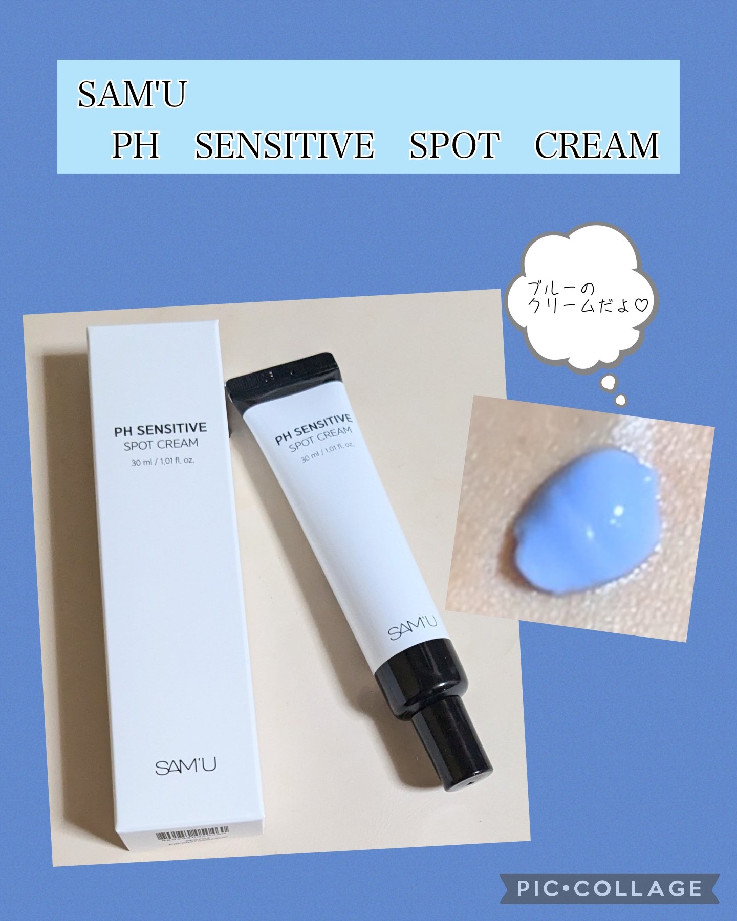 @sam_u_jp@samu_jp_review⛄️✔️SAM'UPHSENSITIVESPOTCREAM肌の赤みを素早く抑えてくれるグアイアズレン*を含んだブルーバリアクリーム🌿✨✨他にもセラミド*、ペプチド*が入ってるよ🌼肌のバリア機能を...