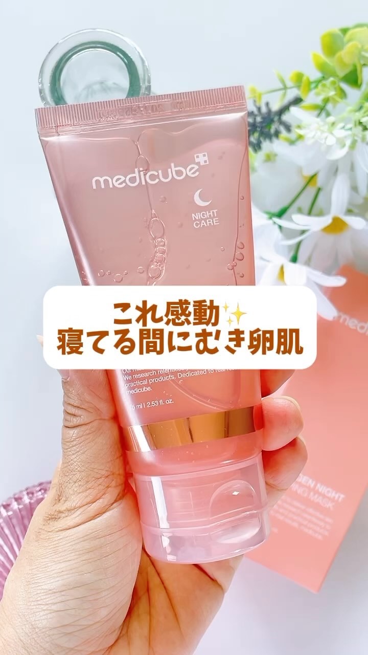 *⑅୨୧୨୧⑅*メディキューブコラーゲンナイトラッピングマスク*⑅୨୧୨୧⑅*夜塗って、翌朝はがすタイプのラッピングマスク♡パッケージデザインがリニューアルして、かわいいピンクになってた🩷寝ている間にお肌の弾力が低下しないように、コラーゲンの...