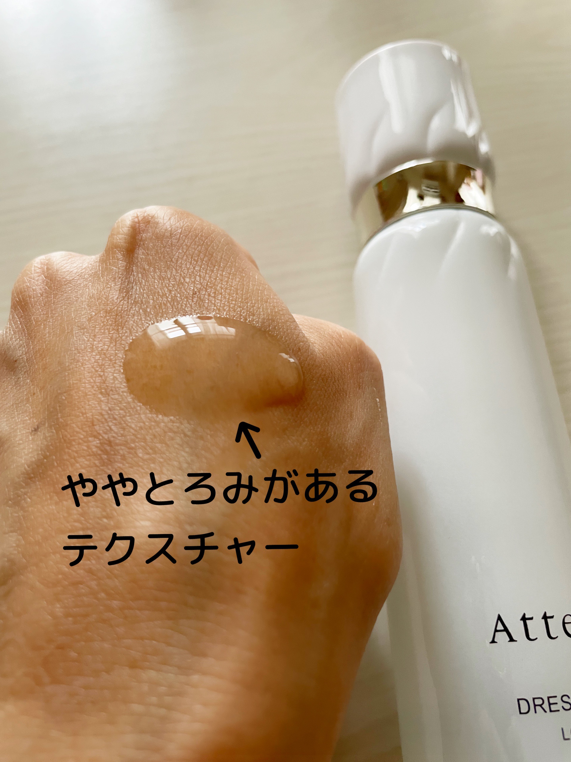 みずみずしくてのびの良いテクスチャー。 ベタつかず、すっと肌になじみ重たくないので使いやすく使用感も気に入りました。 ポンプタイプなので両手が空き、出しやすい!開封後120日がフレッシュに使える期限だそうで表示もあり、開封日を書く欄があるので便利です。