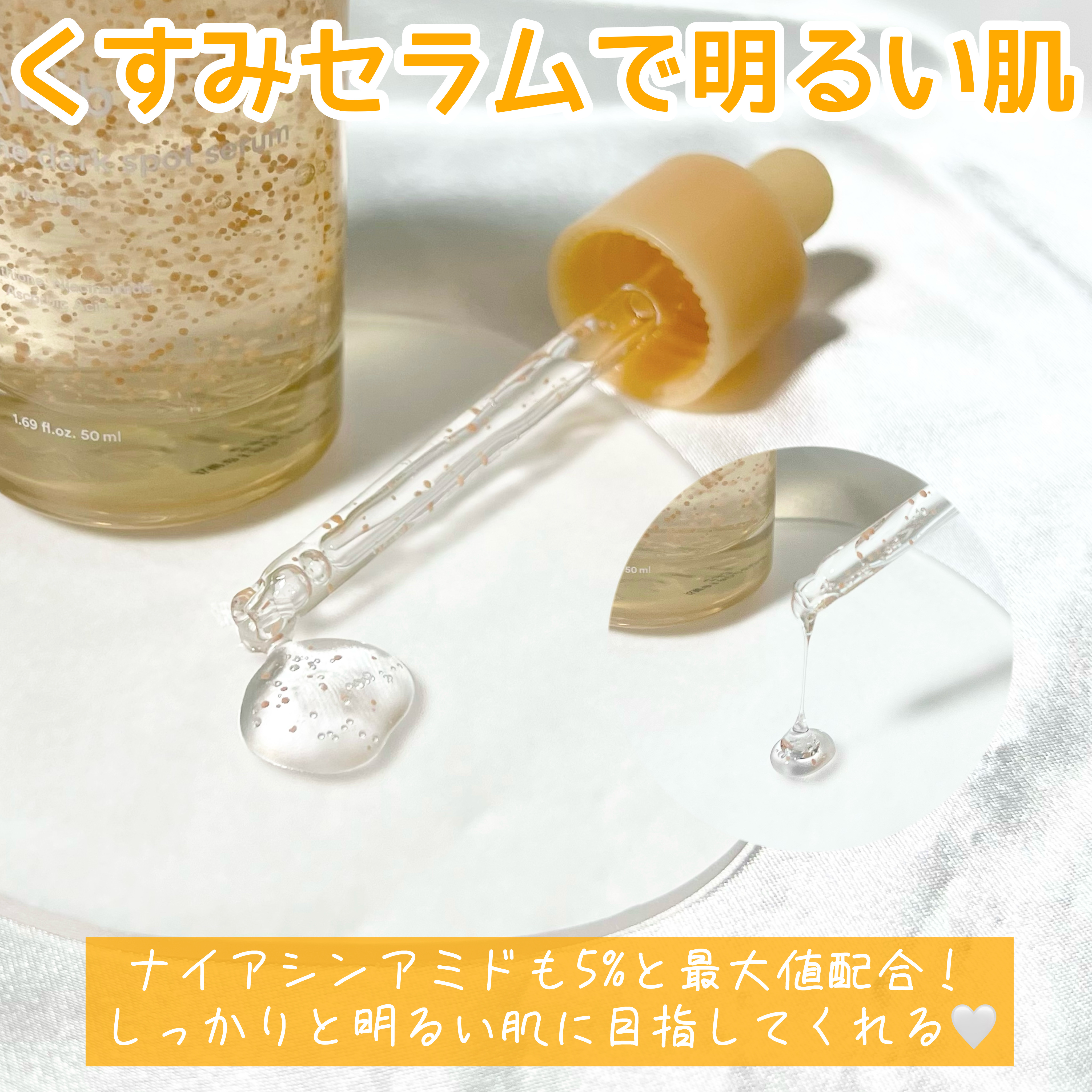 ナイアシンアミド、PlusSome® Vita C、Glutathiosomeの3つの成分でシミやくすみ改善! 塗ると肌の上で弾けるグルタチオンカプセル! ひたひたの美容液と大きめのパッドがうれしい😄 柔らかめで厚いパッドがピタッとくっつき部分ケアにとてもいいなと思いました! Abibの美白ラインは 夏の紫外線が気になる方、くすみシミを改善したい方に特におすすめです👍👍