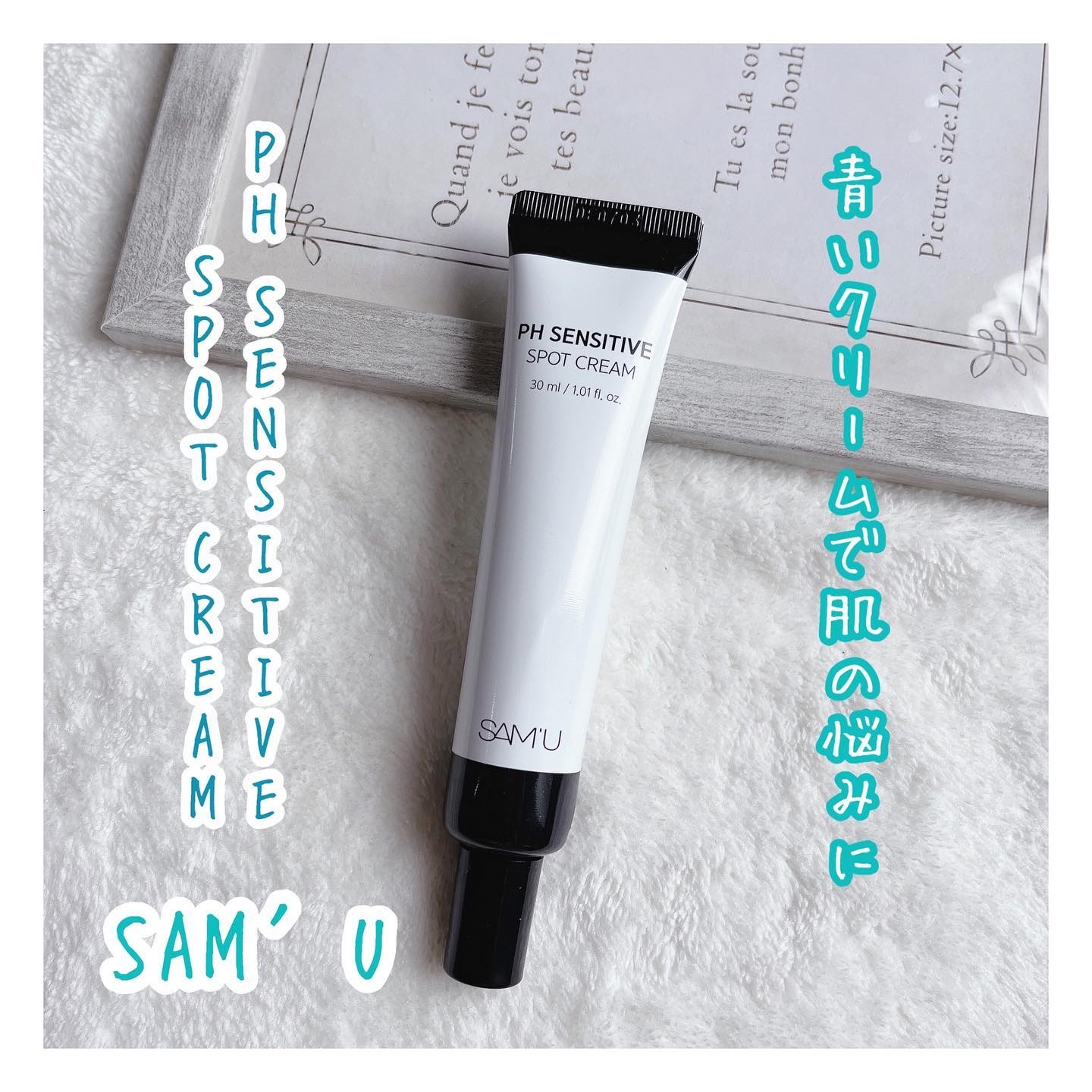 @sam_u_jp@samu_jp_review⛄️✔️SAM'UPHSENSITIVESPOTCREAM肌の赤みを素早く抑えてくれるグアイアズレン*を含んだブルーバリアクリーム🌿✨✨他にもセラミド*、ペプチド*が入ってるよ🌼肌のバリア機能を...
