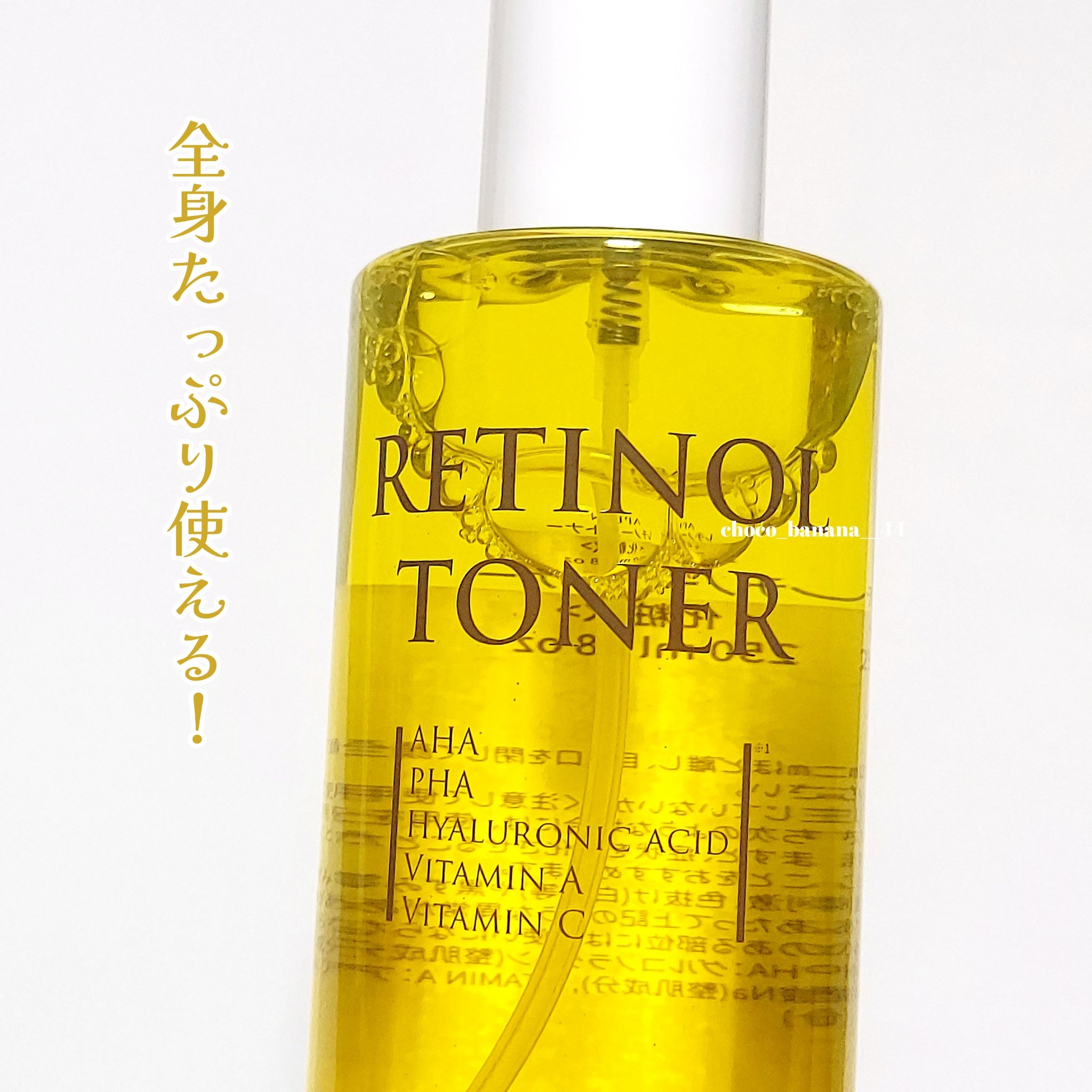 - 初めての方でも使用できるよう、肌への刺激の少ない使い心地でレチノール*を配合。 トナーはスプレータイプの化粧水で、さっぱりとした保湿感。肌のハリや毛穴が気になる方に。 *整肌成分