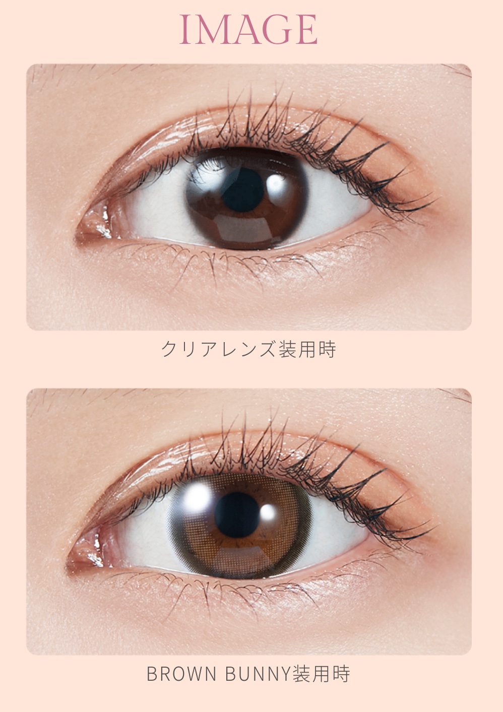 MOLAKのデザインが好きでお気に入り🫰 低含水レンズでドライアイのわたしには乾燥しづらく、1ヶ月使っても最後までほぼ乾く感じはないかな。 新しい方のブラウンバニーは太めフチでくりっとしたはっきりおめめに。 わたしは裸眼が明るめでぼやぁっとしてるので存在感を増してくれる! ドーリッシュグレーはダークグレー〜ライトグレーのグラデーションになっていてうるっとした感じに。 素の瞳が透けてるからそんなにグレー感が強くなく自然な感じが良かった。