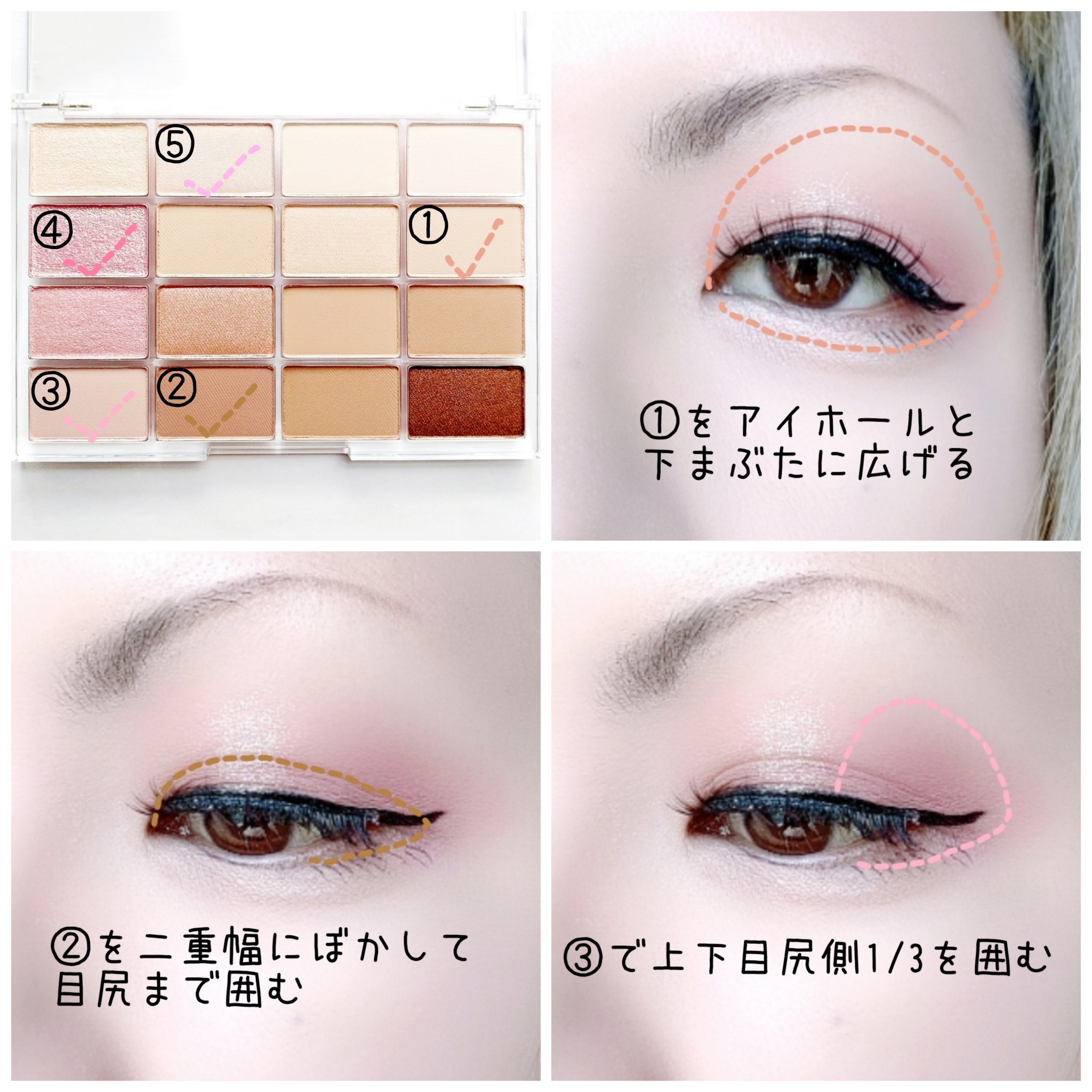 プチプラのクオリティじゃないっ!! 発売前からチェックしていたけれど、ここまで可愛いとは…😆 絶妙カラーで目もとのくすみを飛ばして*明るい印象に🩷 横割りグラデーションでメイクし、立体感をより出したかったので最後に1番左のカラーを上まぶたの真ん中と涙袋にのせています🙆 肌馴染みも良くて粉飛びも感じにくかったです💕 ブラウンの方も店頭に出てたら買おうかな💓