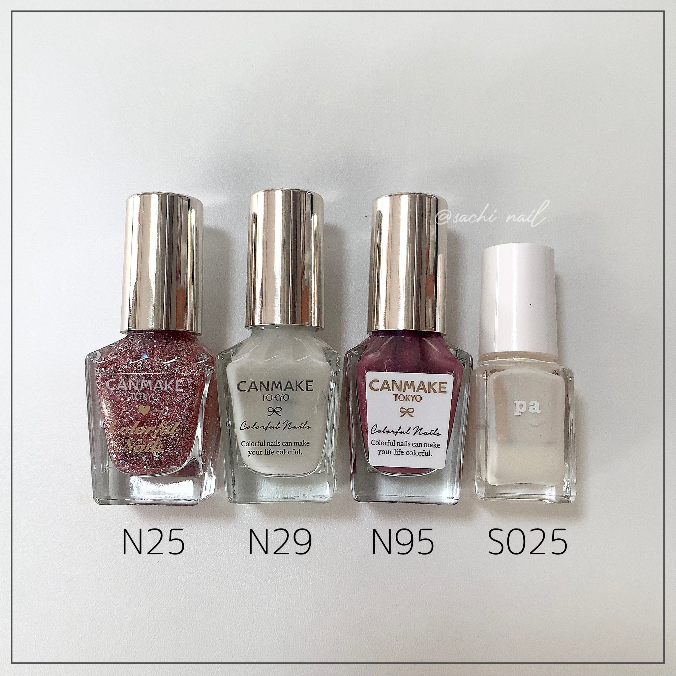 \つくり方howtoもあり💅🏻/キャンメイクとセリアで簡単!!モノトーンなニュアンスバレエコア🩰⟡.·︎︎︎︎︎︎☑︎つくり方等は2枚目からの画像でどうぞセリアのパーツ可愛すぎる😚ネイルのまとめは↓↓↓からどうぞ♡#cocoキャンメイクネイル...
