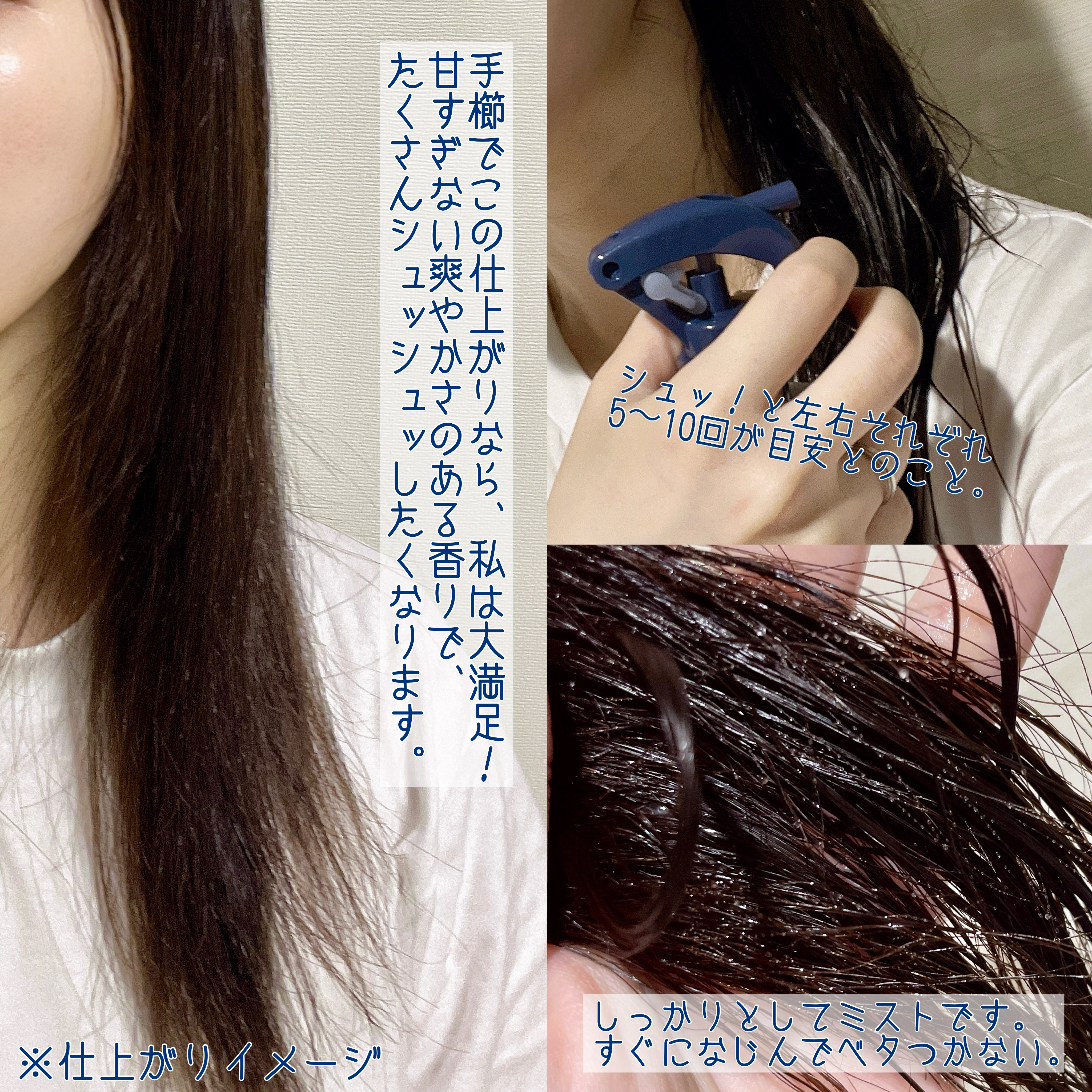 | ヘアケア・スタイリングランキング第64位 | ミストが細やかで全体に吹きかけやすい しっとりよりでは無くてサラサラ寄り | 詳細を見る | |