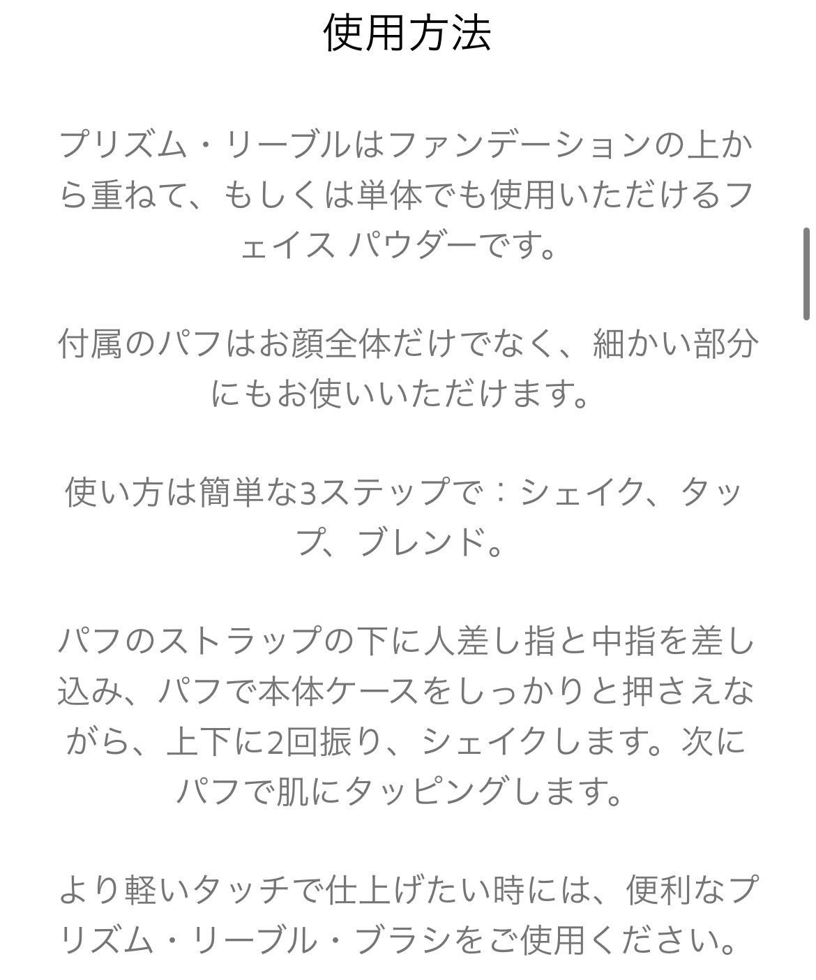 | フェイスパウダーランキング第1位 | パウダーが軽いのでほんとつけていることを 忘れてしまうような薄膜感な仕上がりでした | 詳細を見る | |