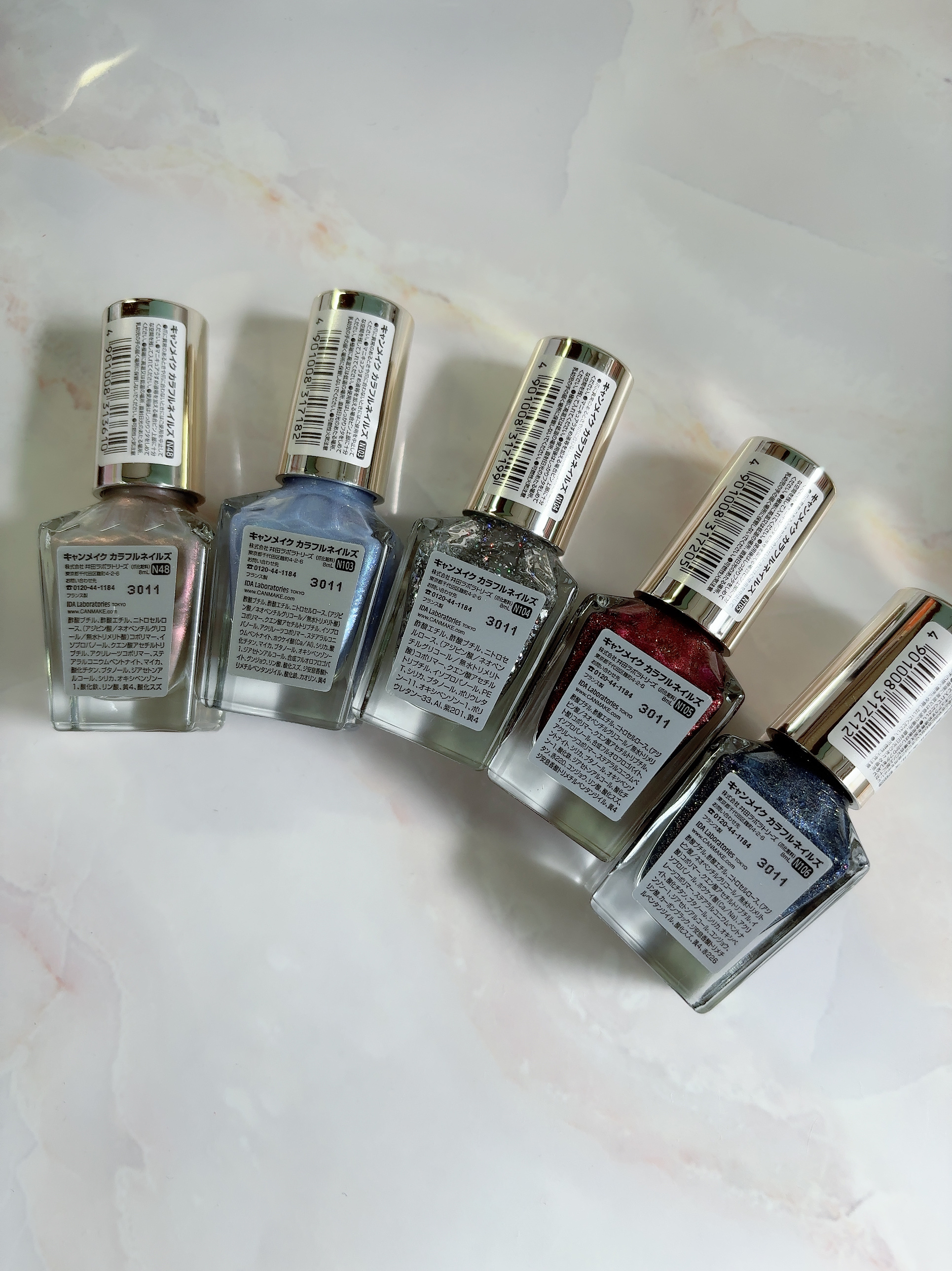 - <N02 シックボルドー> 酢酸ブチル、酢酸エチル、ニトロセルロース、(アジピン酸/ネオペンチルグリコール/無水トリメリト酸)コポリマー、クエン酸アセチルトリブチル、イソプロパノール、アクリレーツコポリマー、ステアラルコニウムベントナイト、酸化鉄、ブタノール、オキシベンゾン-1、シリカ、赤220、ジアセトンアルコール、酸化チタン、リン酸、カーボンブラック、ジ安息香酸トリメチルペンタンジイル、黄4、赤226 [旧]酢酸ブチル、酢酸エチル、ニトロセルロース、(アジピン酸/ネオペンチルグリコール/無水トリメリト酸)コポリマー、クエン酸アセチルトリブチル、イソプロパノール、アクリレーツコポリマー、ステアラルコニウムベントナイト、(スチレン/アクリレーツ)コポリマー、酸化鉄、ブタノール、シリカ、オキシベンゾン-1、赤220、ジアセトンアルコール、酸化チタン、ジ安息香酸トリメチルペンタンジイル、リン酸、カーボンブラック、黄4 <N08 ミスティモーヴ> 酢酸ブチル、酢酸エチル、ニトロセルロース、(アジピン酸/ネオペンチルグリコール/無水トリメリト酸)コポリマー、クエン酸アセチルトリブチル、イソプロパノール、アクリレーツコポリマー、ステアラルコニウムベントナイト、酸化チタン、ブタノール、シリカ、オキシベンゾン-1、マンガンバイオレット、ジアセトンアルコール、酸化鉄、赤226、リン酸、カオリン、ジ安息香酸トリメチルペンタンジイル、黄4 [旧] 酢酸ブチル、酢酸エチル、ニトロセルロース、(アジピン酸/ネオペンチルグリコール/無水トリメリト酸)コポリマー、クエン酸アセチルトリブチル、イソプロパノール、アクリレーツコポリマー、ステアラルコニウムベントナイト、(スチレン/アクリレーツ)コポリマー、酸化チタン、ブタノール、オキシベンゾン-1、シリカ、酸化鉄、ジアセトンアルコール、マンガンバイオレット、ジ安息香酸トリメチルペンタンジイル、リン酸、カーボンブラック、黄4 <N10 ペールラベンダー> 酢酸ブチル、酢酸エチル、ニトロセルロース、(アジピン酸/ネオペンチルグリコール/無水トリメリト酸)コポリマー、クエン酸アセチルトリブチル、イソプロパノール、アクリレーツコポリマー、ステアラルコニウムベントナイト、酸化チタン、ブタノール、酸化鉄、オキシベンゾン-1、シリカ、ジアセトンアルコール、マンガンバイオレット、リン酸、ジ安息香酸トリメチルペンタンジイル、黄4、赤226 [旧]酢酸ブチル、酢酸エチル、ニトロセルロース、(アジピン酸/ネオペンチルグリコール/無水トリメリト酸)コポリマー、クエン酸アセチルトリブチル、イソプロパノール、アクリレーツコポリマー、ステアラルコニウムベントナイト、酸化チタン、ブタノール、シリカ、オキシベンゾン-1、ジアセトンアルコール、酸化鉄、ジ安息香酸トリメチルペンタンジイル、マンガンバイオレット、リン酸、黄4 <N12 アーモンドグリーン> 酢酸ブチル、酢酸エチル、ニトロセルロース、(アジピン酸/ネオペンチルグリコール/無水トリメリト酸)コポリマー、クエン酸アセチルトリブチル、イソプロパノール、アクリレーツコポリマー、ステアラルコニウムベントナイト、(スチレン/アクリレーツ)コポリマー、酸化チタン、ブタノール、シリカ、オキシベンゾン-1、ジアセトンアルコール、ジ安息香酸トリメチルペンタンジイル、黄4、カーボンブラック、リン酸、コンジョウ <N16 ココア> 酢酸ブチル、酢酸エチル、ニトロセルロース、(アジピン酸/ネオペンチルグリコール/無水トリメリト酸)コポリマー、クエン酸アセチルトリブチル、イソプロパノール、酸化チタン、アクリレーツコポリマー、ステアラルコニウムベントナイト、酸化鉄、ブタノール、シリカ、オキシベンゾン-1、ジアセトンアルコール、黄4、リン酸、ジ安息香酸トリメチルペンタンジイル、カーボンブラック、赤226 [旧]酢酸ブチル、酢酸エチル、ニトロセルロース、(アジピン酸/ネオペンチルグリコール/無水トリメリト酸)コポリマー、クエン酸アセチルトリブチル、イソプロパノール、酸化チタン、アクリレーツコポリマー、ステアラルコニウムベントナイト、ブタノール、酸化鉄、シリカ、オキシベンゾン-1、ジアセトンアルコール、ジ安息香酸トリメチルペンタンジイル、黄4、リン酸、カーボンブラック <N17 クリームチャイ> 酢酸ブチル、酢酸エチル、ニトロセルロース、(アジピン酸/ネオペンチルグリコール/無水トリメリト酸)コポリマー、クエン酸アセチルトリブチル、イソプロパノール、アクリレーツコポリマー、ステアラルコニウムベントナイト、(スチレン/アクリレーツ)コポリマー、酸化チタン、ブタノール、シリカ、オキシベンゾン-1、ジアセトンアルコール、ジ安息香酸トリメチルペンタンジイル、酸化鉄、リン酸、黄4、カーボンブラック <N19 スウィートコーラル> 酢酸ブチル、酢酸エチル、ニトロセルロース、(アジピン酸/ネオペンチルグリコール/無水トリメリト酸)コポリマー、クエン酸アセチ