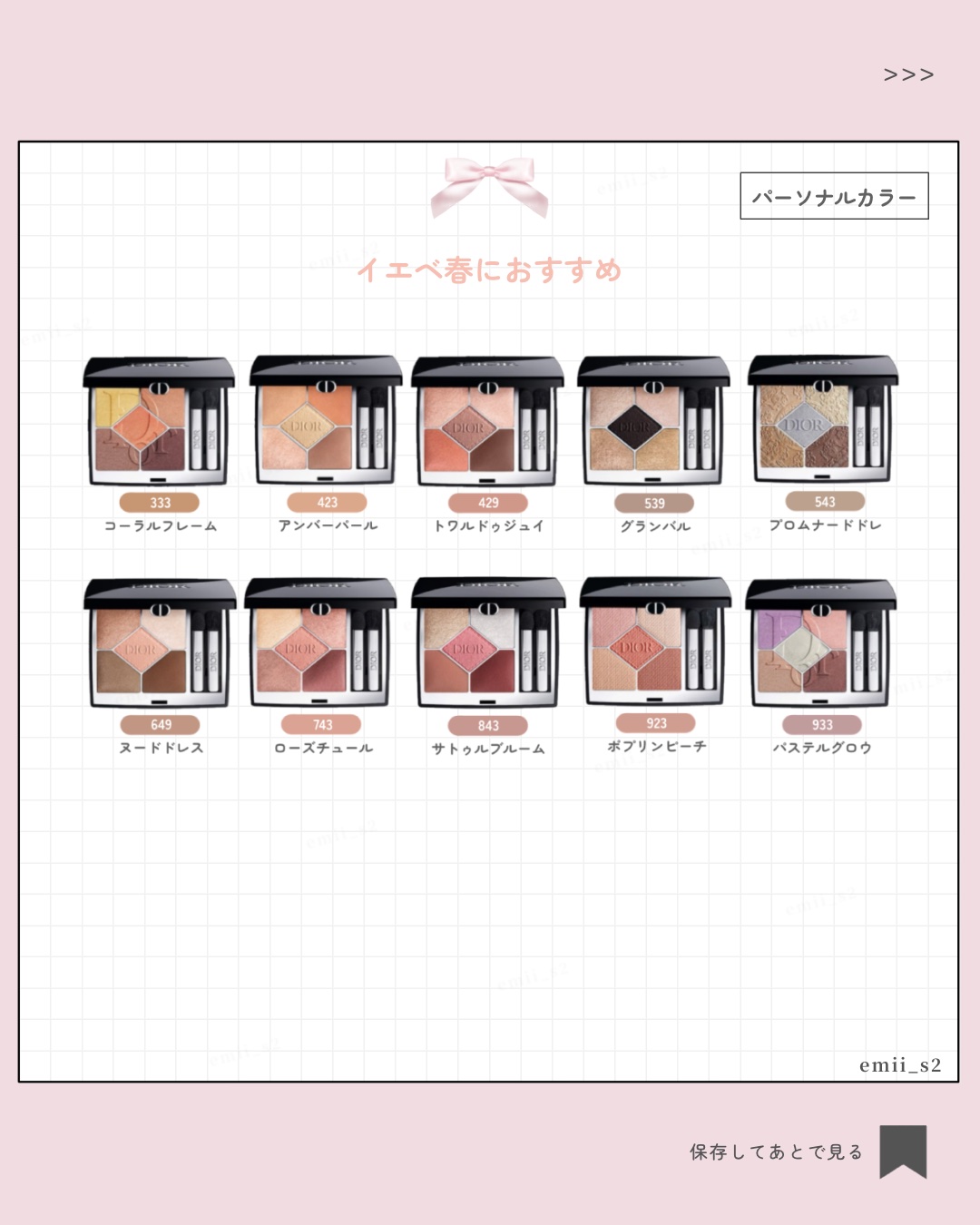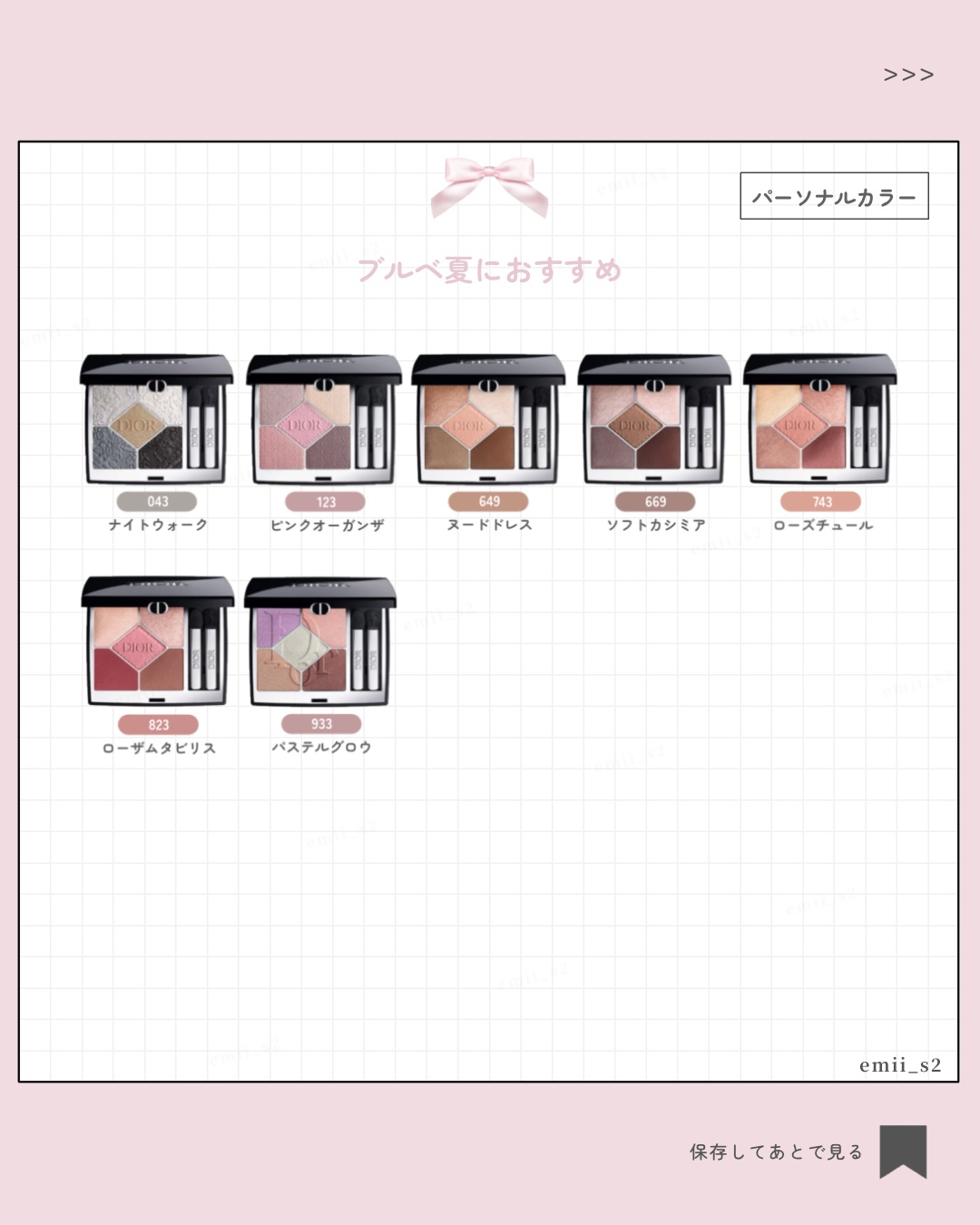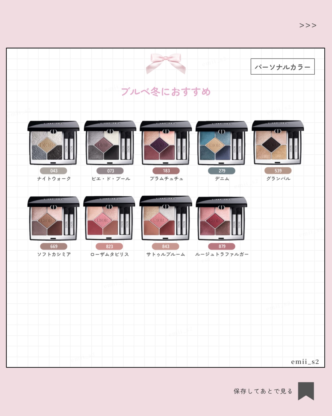@fiorie_kurumi☜他の投稿はこちら【Diorディオールショウサンククルール】サロンで人気の10種をパーソナルカラー分類しました🕊183プラムチュチュ(冬)▶︎濃く深みのある色が得意な方におすすめな大人っぽく色気のあるプラム系パレッ...