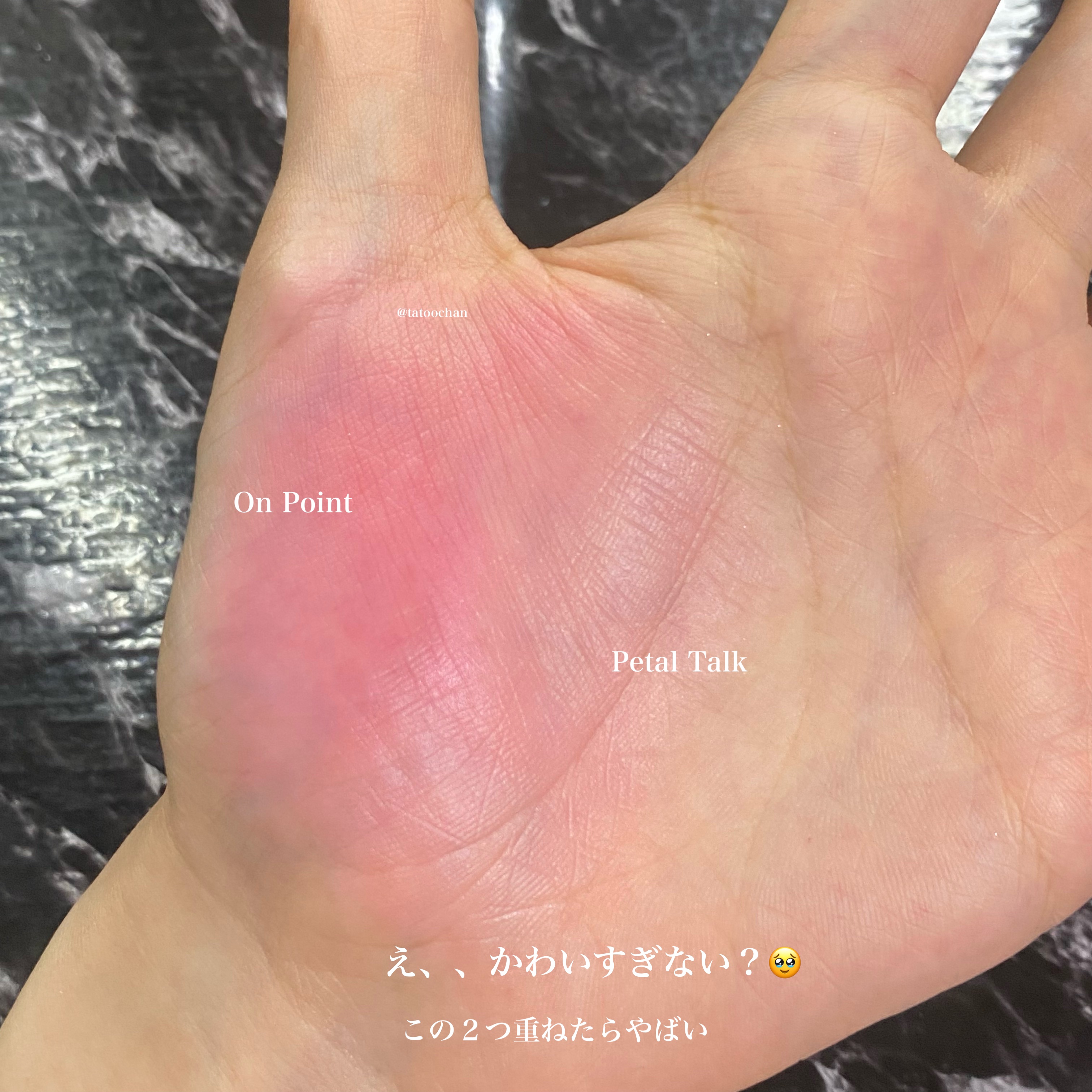 特に②のハートの部分が、綺麗な青みピンクで発色もかなりいいです! 透明感一気に出せるので、アイシャドウもピンクパープル系に合わせてしてみたら可愛い気がします! ブルベ夏カラーのものが本当に大好きなんですけど、これは2つともドンピシャでした!