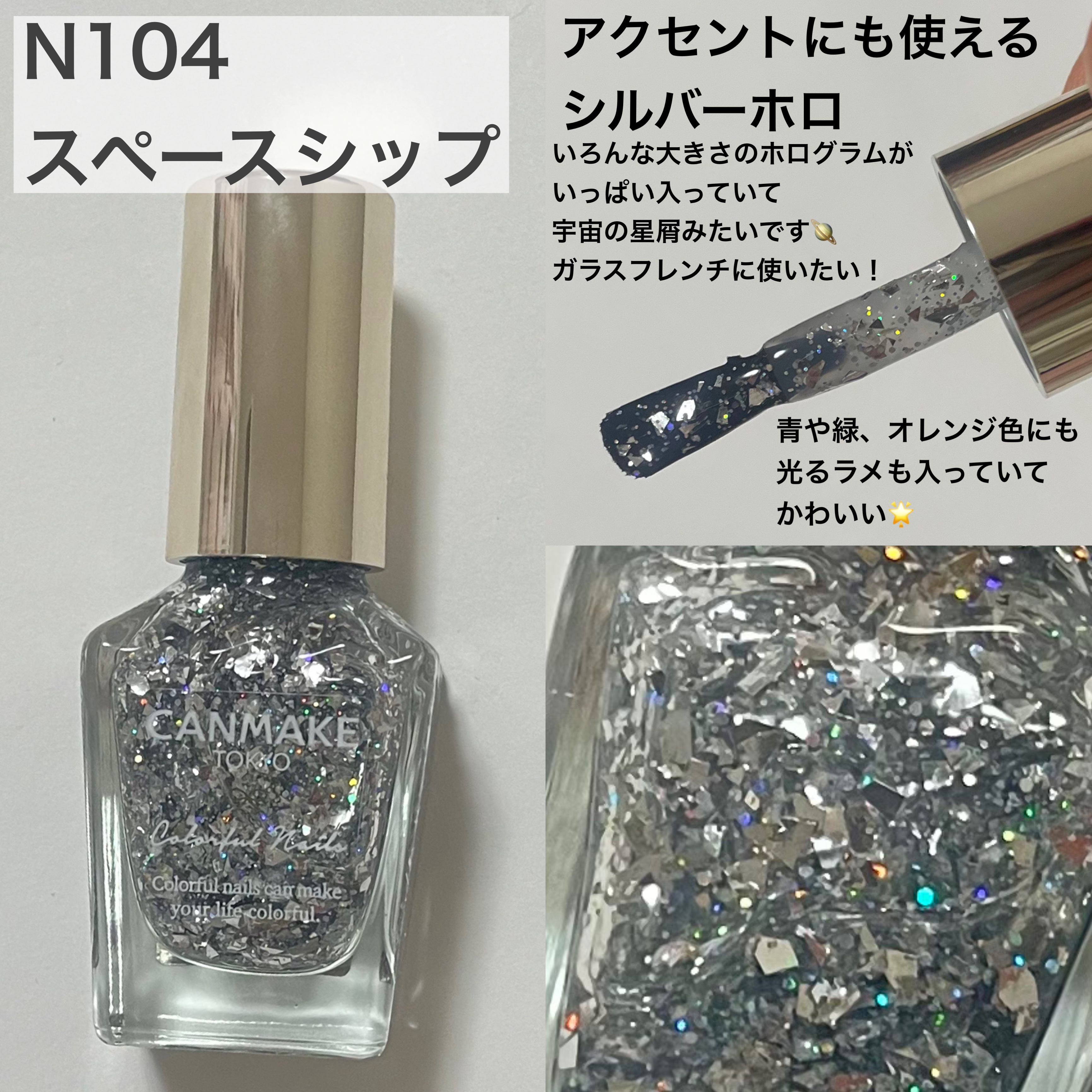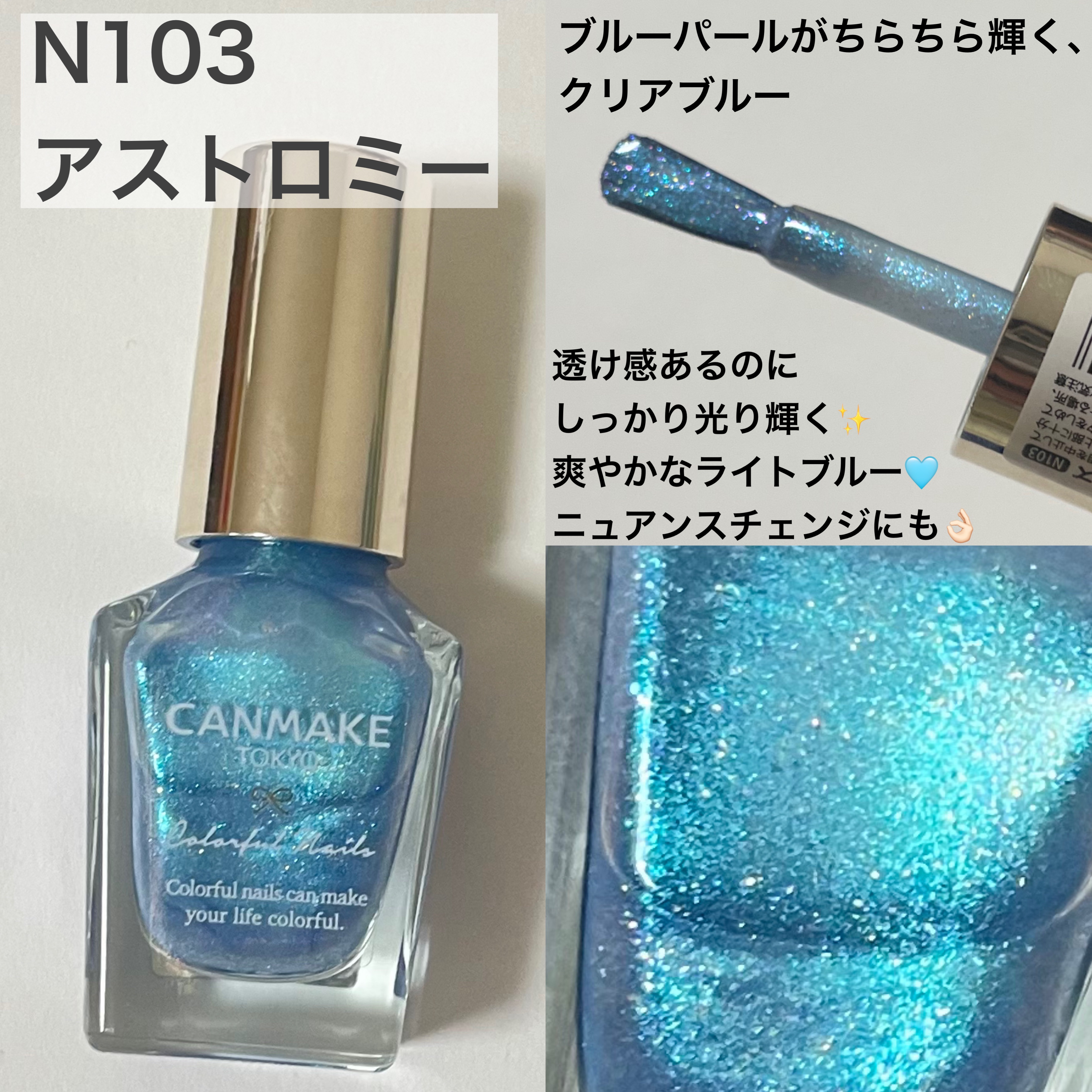 Y3Kとは『Year of 3K』の略。 3000年代をイメージした近未来的なファッションスタイルなんだそう! 今回の新色は宇宙のきらめきのような繊細なパールやホログラム配合していてギラギラ✨ N103 アストロノミー(限定色):ブルーパールがちらちら輝くクリアブルー