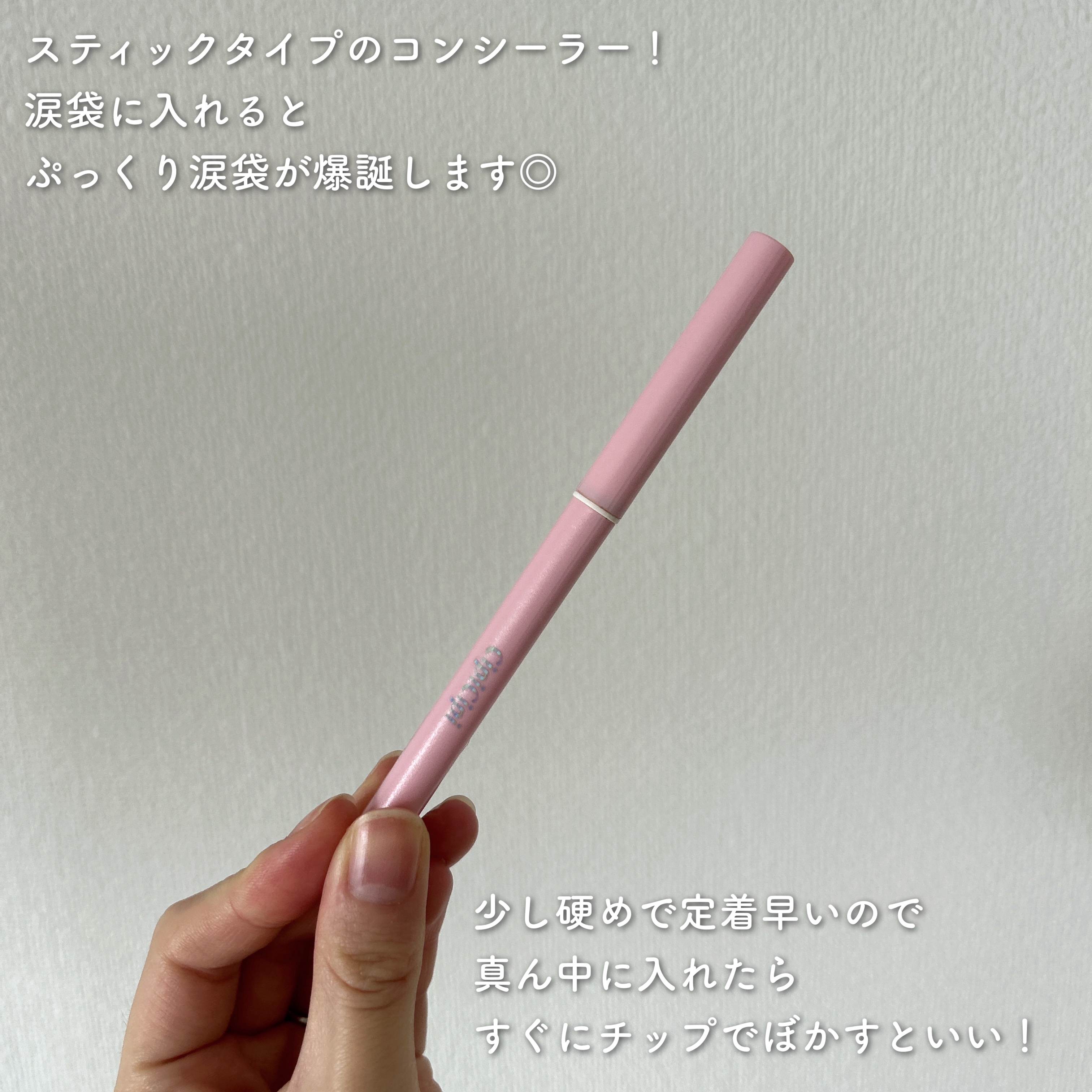 涙袋ぷっくり❤︎ ペンシルタイプのコンシーラー 直径3mmの細芯を採用 繊細な目元にもスルスル描ける いちごみるくカラーが絶妙に可愛い💕 自然なぷっくり涙袋が簡単に完成します✨