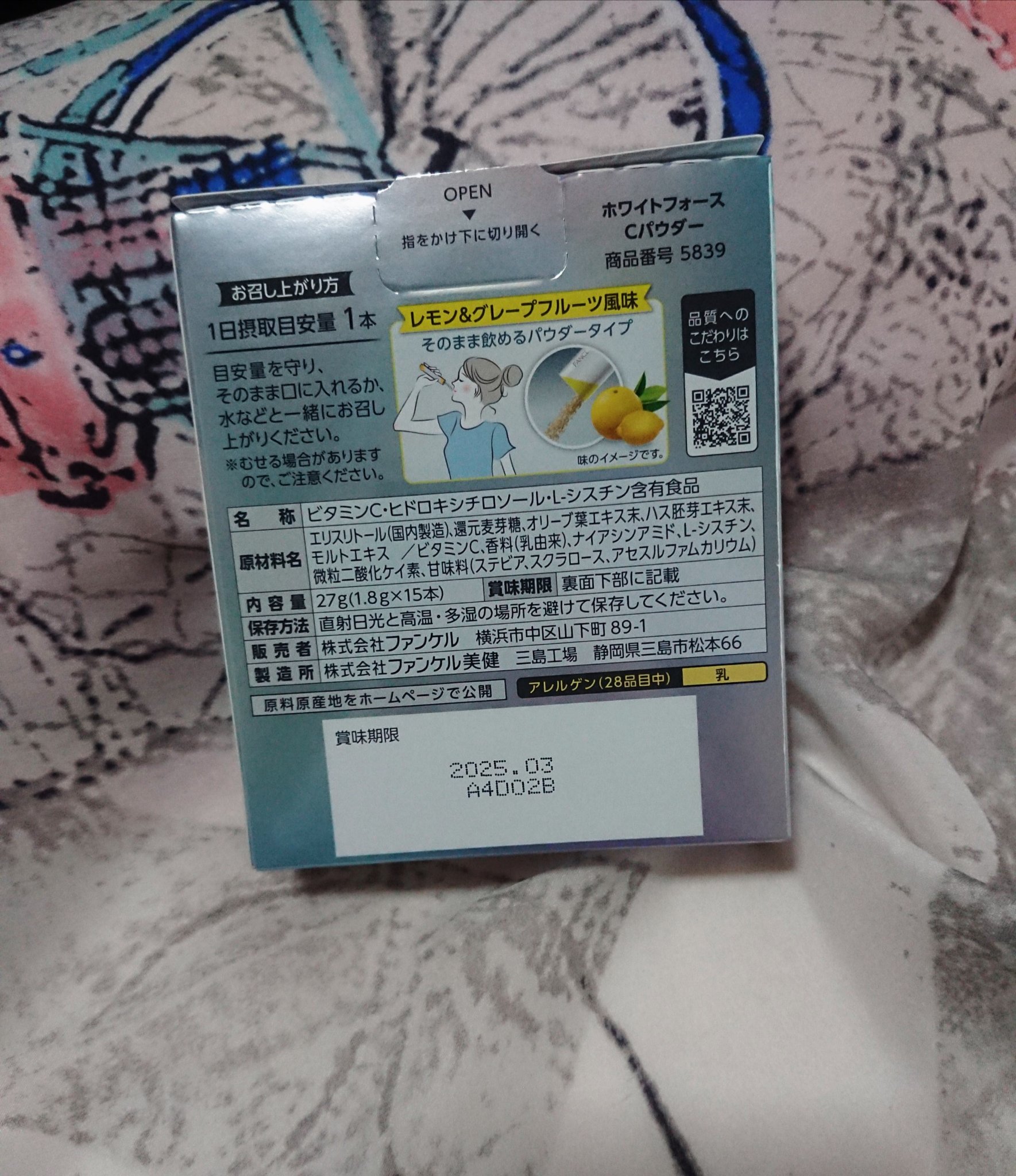 - 数量限定発売 ◆「トリプルビタミンC」を1,000mg配合 「トリプルビタミンC」は、体内に長く留まるビタミンC誘導体など、溶解性の異なる3種のビタミンCを配合しています。 汗などでビタミンCの失われやすい、夏の時期にも◎。 ほかにも「ヒドロキシチロソール」と「L-シスチン」「ハス胚芽エキス」を配合し、透明感のある美しい毎日をサポートします。 ◆爽やかなレモン&グレープフルーツ風味 水なしでそのまま飲めるパウダータイプのため、いつでもどこでも手軽にお召し上がりいただけます。 【1日の目安】 1本 【アレルゲン(28品目中)】 乳 【ご注意】 ※妊娠・授乳中の方、お子様はお召し上がりにならないでください。 ※2025年2月後半以降、商品パッケージリニューアル。
