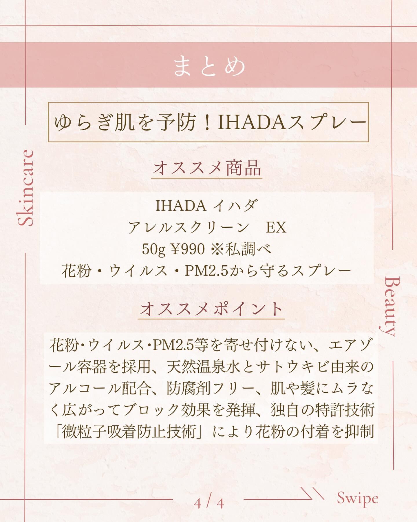 花粉・ウイルス・PM2.5から守る マスクやメイクの上からも使える花粉等付着抑制スプレー。 イオンの透明ベールで花粉等の付着を抑制するスプレー。 メイクの上からでも使える細かいミストのスプレー。 くしゃみや鼻水の症状が少しだけど緩和されるのが嬉しい。 今年の花粉症の季節は薬とこれで対策していきたい。