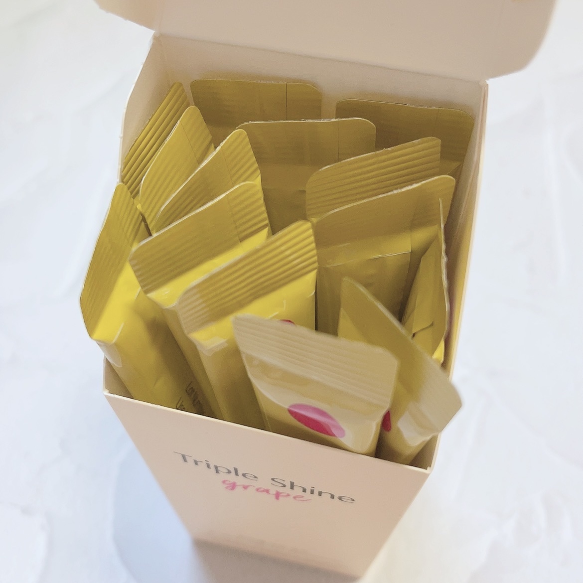 - <美容ケア3STEP>フランス特許成分のビライト™、ナイアシン、ビタミンC・B群配合 <こだわりの原料のみ>クリーンで追跡可能な原材料を使用。からだのための成分のみで開発することにこだわり、ゼリー状にする成分も全て天然由来成分に <続けられるおいしさ>甘味料不使用!濃厚なブドウジュースや飲みやすい赤ワインを思わせる、上品な味わい