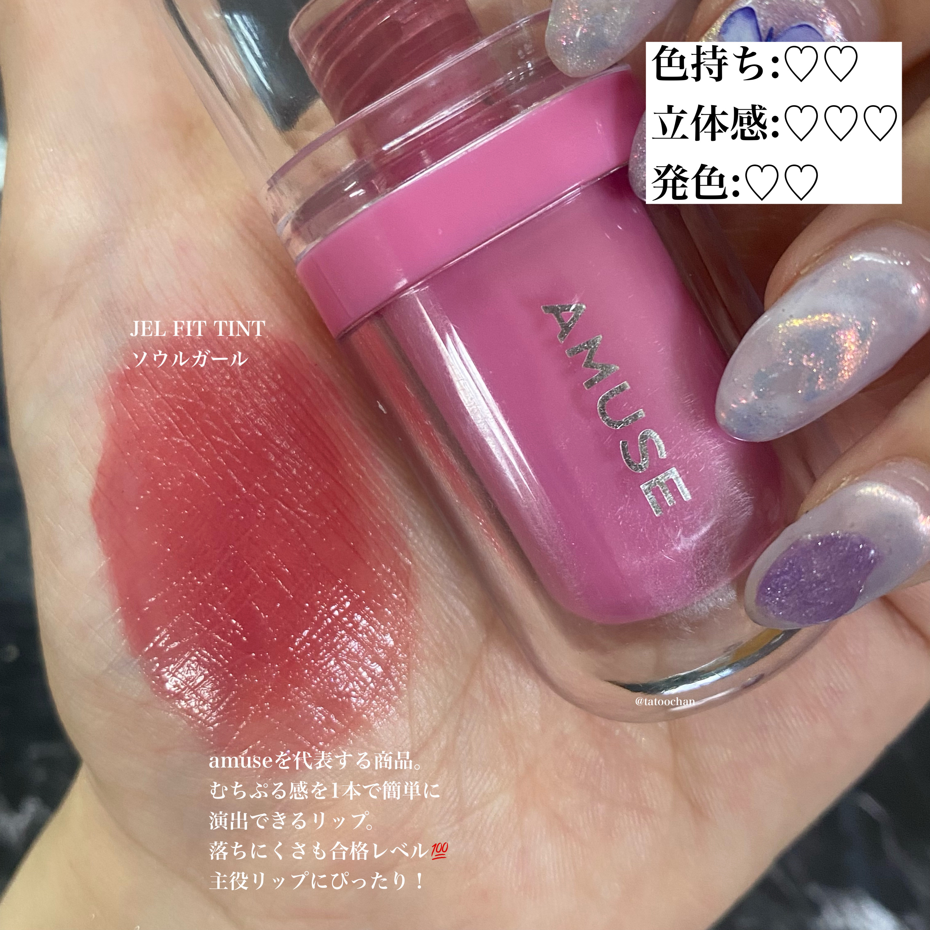 私が1番大好きなティントで、どこのブランドでもこの色味と質感、立体感は作れないです! ティントなのに、保湿とプランパー効果も兼ね備えた優秀なリップ!アミューズが得意とするモーヴカラーですが色味はほぼソウルガールと同じ! このみずみずしさとなんとも言えないモーヴカラーと白ぽさの調和…他の2色よりも柔らかさを感じるのでブルベカラー苦手だけど試したいって人には挑戦しやすいかも💜