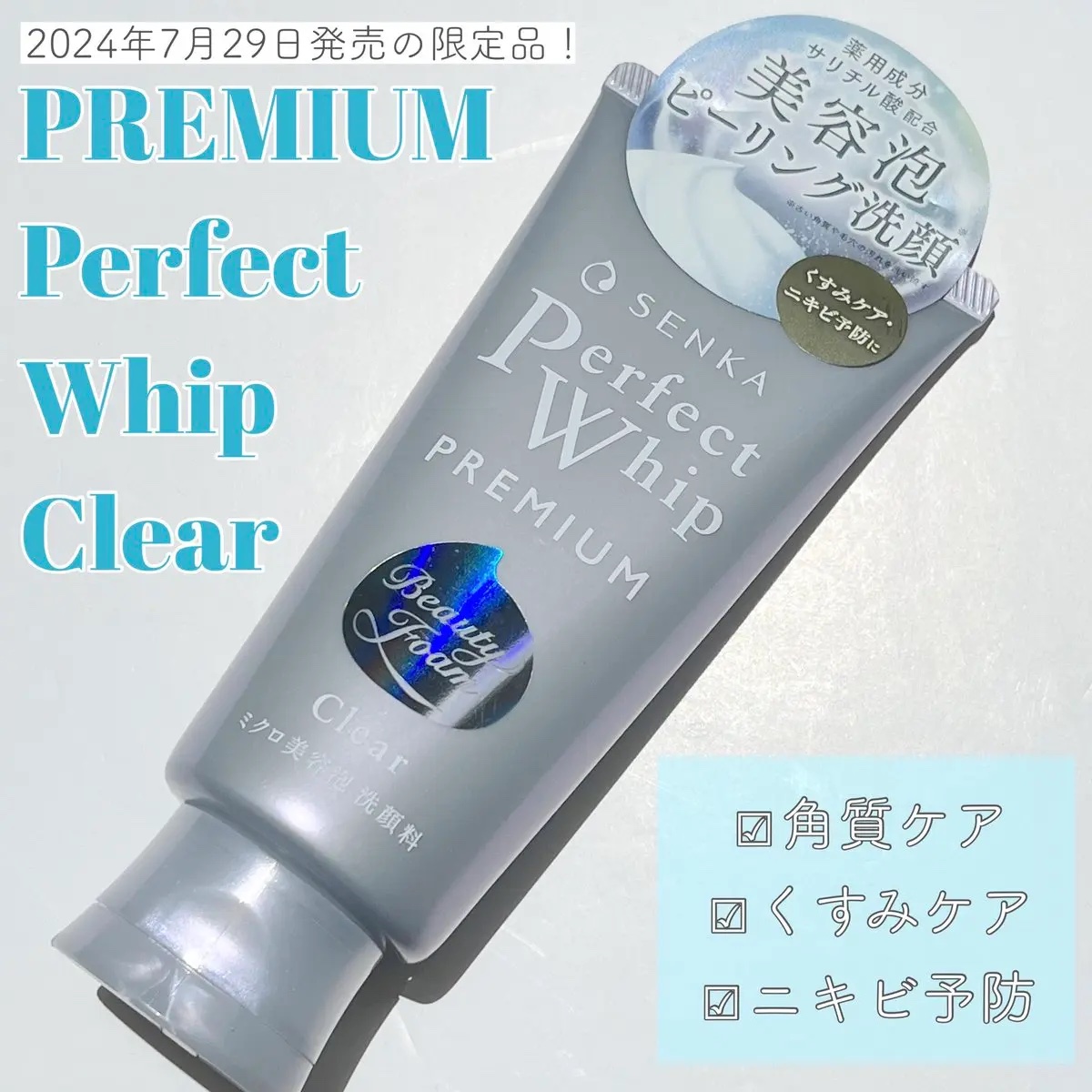 - 2025/2/26~定番化決定 販売名:SENKA パーフェクトホイップ PC (医薬部外品) 1.サリチル酸配合(ニキビ予防) 美容液でも用いられるBHA(サリチル酸)配合。 2.毎日使えるピーリング洗顔 ミクロ美容泡がサリチル酸を抱え込んで肌*に届ける。優しい使い心地。 3.カモミールエキス新配合 肌のキメを整える成分を新配合。透明感あふれるまっさらすっぴんへ。 4.ニキビ予防 5.上品で心地よいハーバルフルーティーな香り *角層まで 2025年1月29日(水)@cosme先行発売