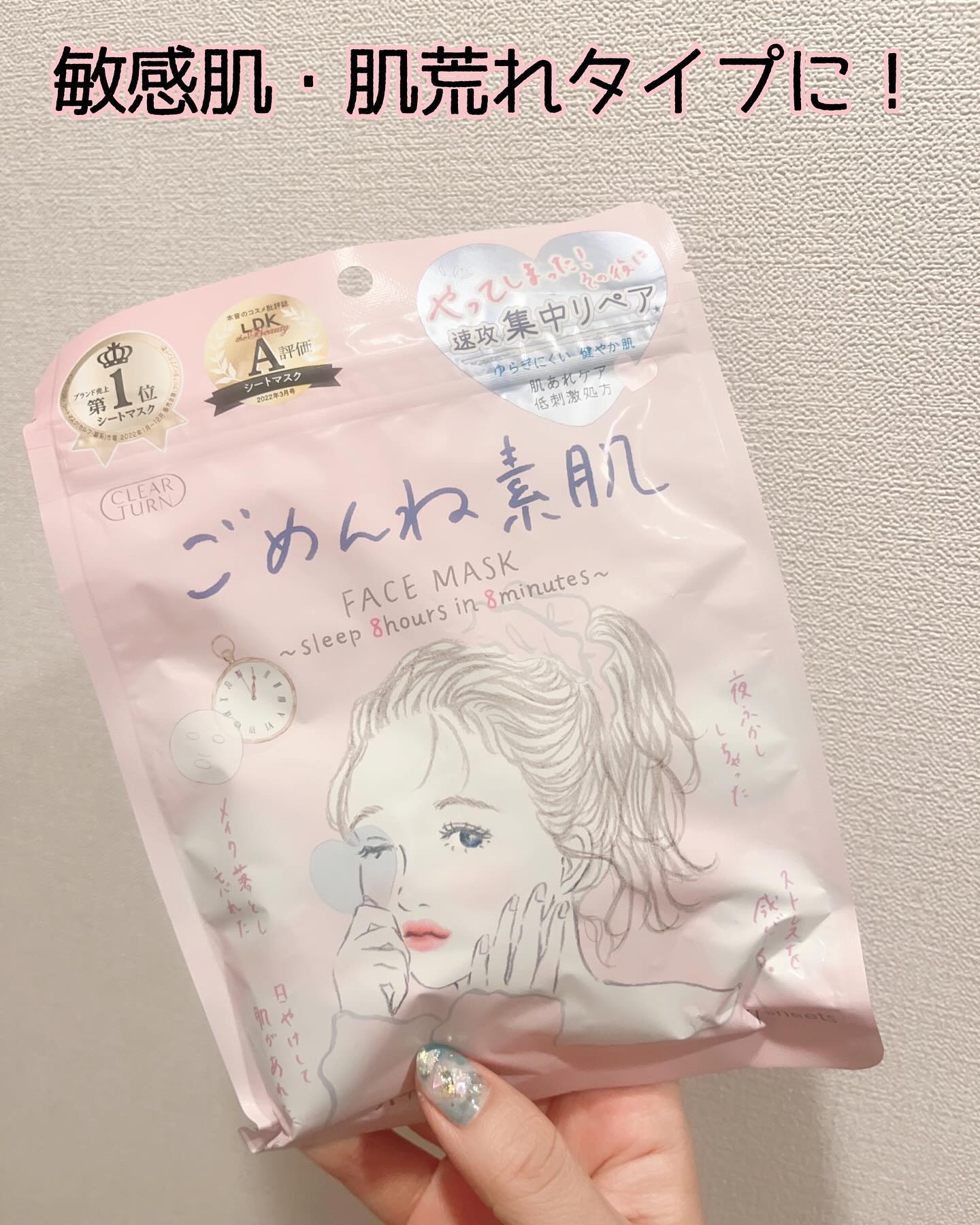 〜クリアターン ごめんね素肌キニナル〜"8分の集中ケアで8時間熟睡したような肌に"不規則な生活・睡眠不足が続いていたので購入!肌も荒れてたんですが、刺激なく悪化もすることなく使えました!水分チャージされて、毛穴も目立たなかったのと、殺菌・消炎...