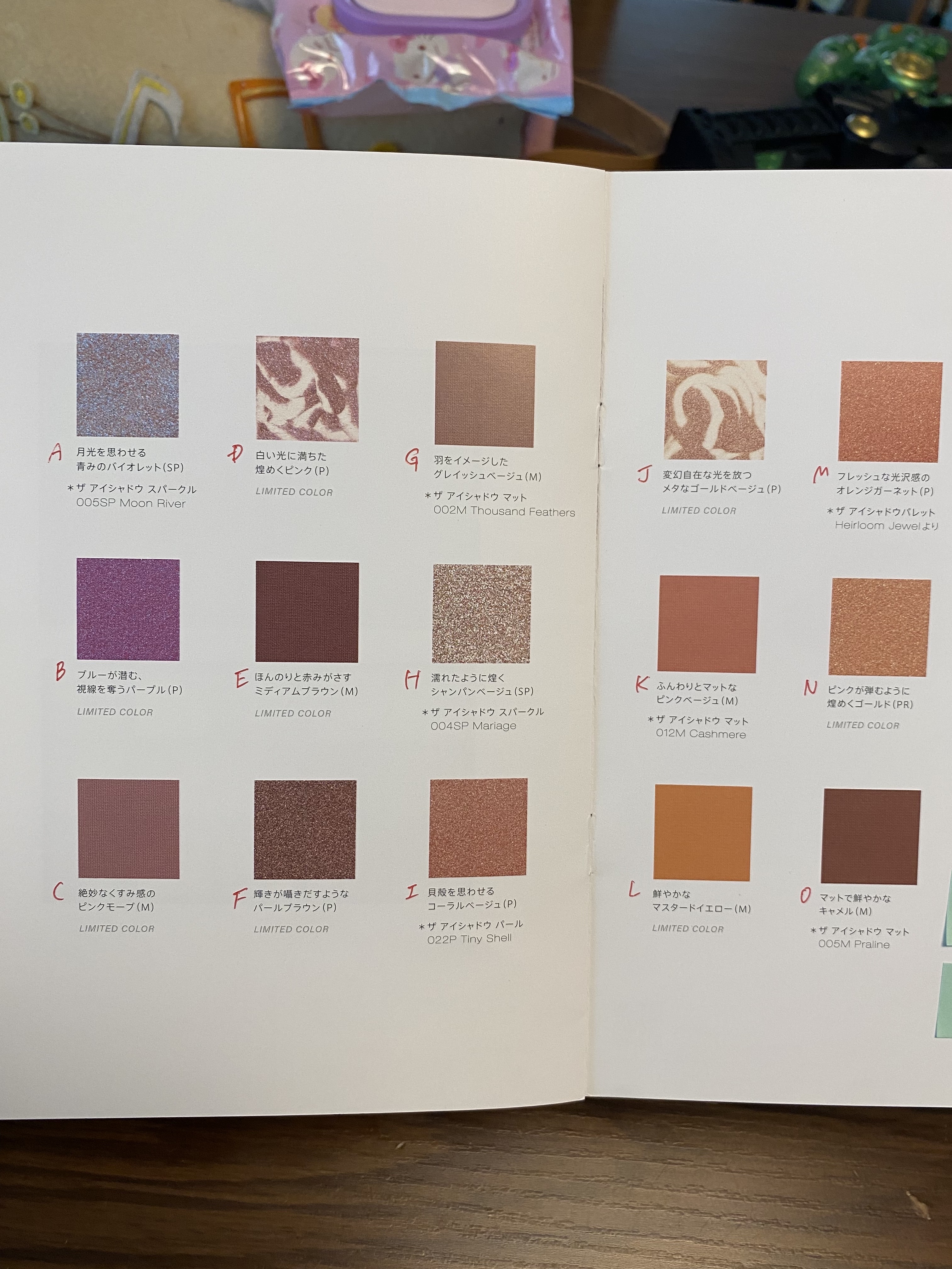 【アディクションリニューアル】リニューアルに伴い無くなるカラーも。お店からもらっていたカタログ?に・残るカラー(数字書き込み分)・自分の手持ち(赤スラッシュ) (赤バツは人に譲った分、78.55はミスで 今も手持ちにいる分)の書き込みメモをし...