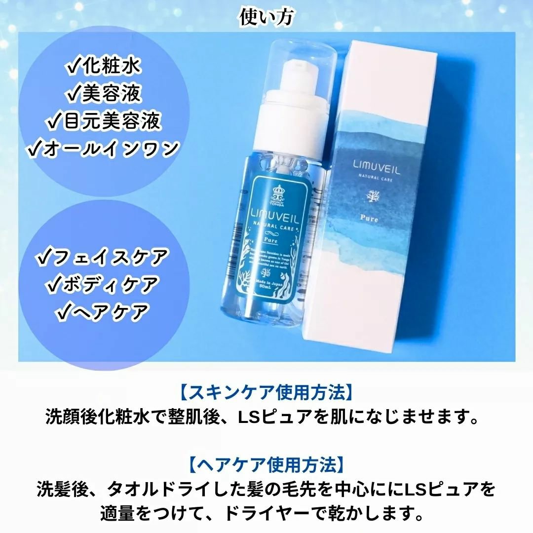 お肌と髪両方に使える美容液♡LIMUVEILLSピュア商品に含まれる「フコイダン」は潤いとその持続性が大きな特徴となります!その効果はヒアルロン酸よりも高いと検証されています!フコダインとは…?海藻のぬるぬるに含まれるものです。こ...