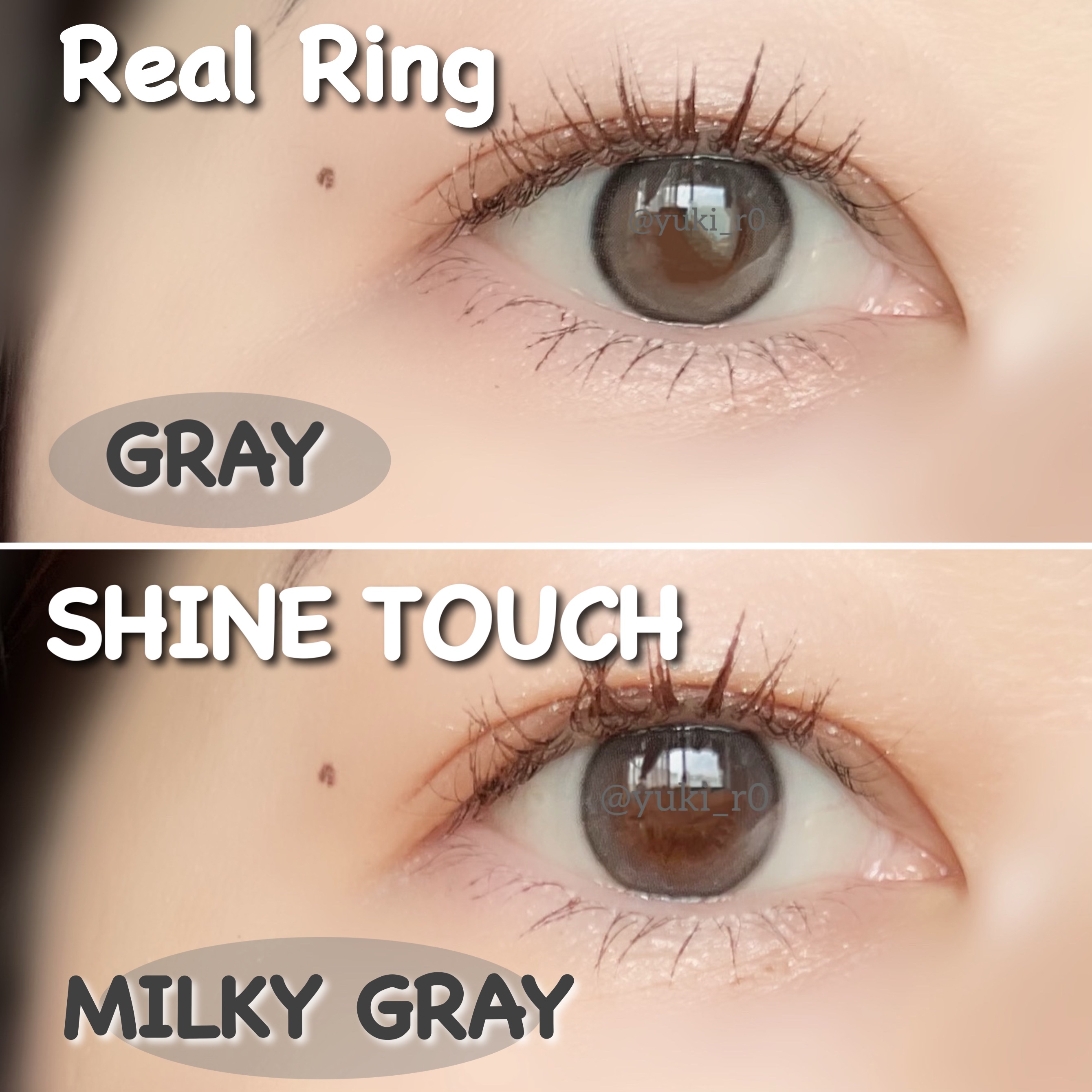 生まれつき色素の薄いような瞳を演出する裸眼風カラコンです✨ 透明感のあるトーアップブラウンで目元を明るくし、ほぼ裸眼サイズの着色直径でナチュラルに奥目解消できます👍🏻 明るめの淡いブラウンで目元が暗くてお悩みの奥目さんも、ミルクを混ぜたような華やかな瞳に🍼 明るめの淡いブラウンで華やかな目元にしながらベースデザイン超えの極細フチで、奥目にオシャレ度UP💖 ヘーゼルのハイライターで目元に光を集めて、薄めで柔らかいブラウンの細フチの、瞳に月が映ったような水光カラコンです🌙