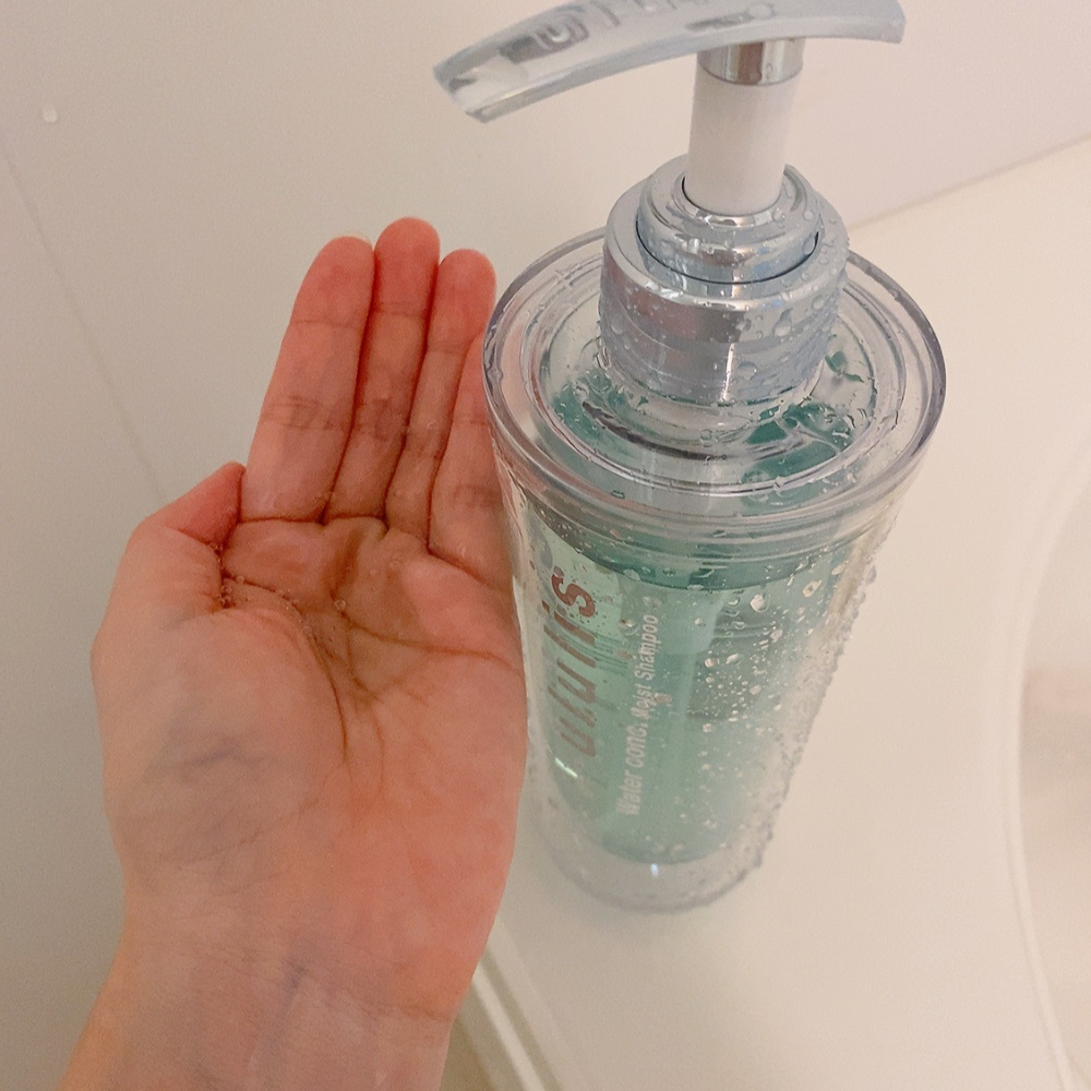 見た目のイメージは「水」。美容水から生まれたMIZUシャンプーとトリートメントです。製品の90%以上が補水+保湿成分で構成されているらしく、10種の水溶性美容液成分を配合し、髪の芯からうるおいを与えるということみたい。 シャンプーは、スウィートサボンの香りです。爽やかさの中にも甘さがある香りですよ。泡立ちもとてもよくて、すぐに泡立つのが気持ちいい。 アクアブーケの香りがとてもみずみずしいです。洗い流すときも、ツルツルした感触が気持ちいいですね。