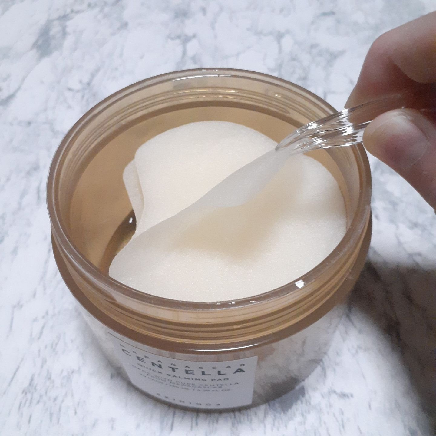 時間がない朝でも1分で叶える水分チャージ! 全成分*EWGグリーン等級の鎮静パッドで、摩擦も感じにくいため、敏感肌でも使えます! やわらかいパッドにエッセンスがヒタヒタ🥺 割いても使えます。独特の形が目元や頬に置きやすい! 肌当たり優しくてひんやりするのがお気に入り💓 素敵なお品ありがとうございました🩷