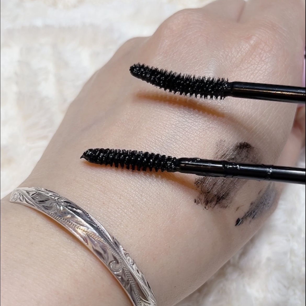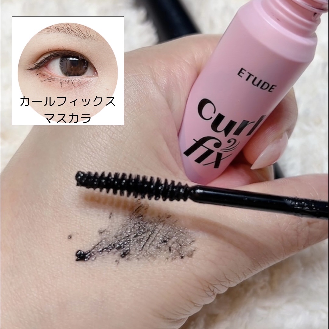 #エチュード の人気マスカラからボリュームタイプ登場🖤 既存のカールフィックスマスカラのブラシより細めで、四角にカッティングされ、目の曲線に沿ってカーブしたスクエアフィットブラシが特徴。 くっきりとしたクリアブラックで印象的なまつ毛を演出 細めのブラシなので、細かいことろにも使いやすくて、下まつ毛にも塗りやすいです。 まつ毛のカールを長時間キープしてくれる#マスカラ下地 カールキープ、ボリュームアップ、トップコートの1本3役👀