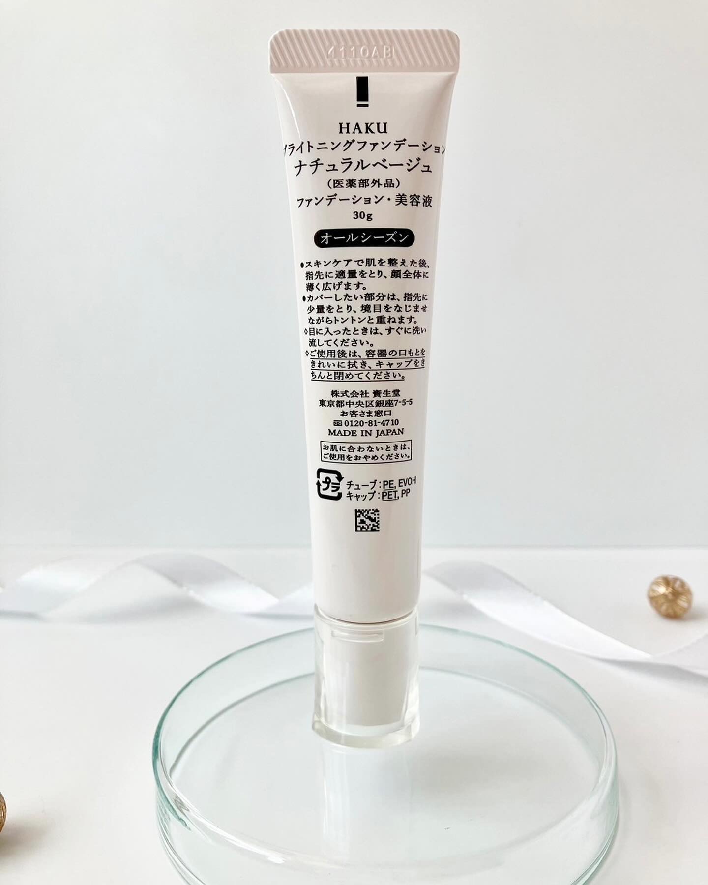 - SPF30 PA+++ 美白ケアしながら密着してシミカバーするファンデーション。 美白有効成分がメラニンの生成を抑え、シミ・そばかすを防ぎます。 軽やかに広がり、気になるシミや色ムラに密着して目立たせず、みずみずしいうるおいが長時間続きます。 明るく自然な仕上がりで、シミの目立たない、美発光肌へ。 無香料 (販売名:HAKU ブライトニングファンデーション)