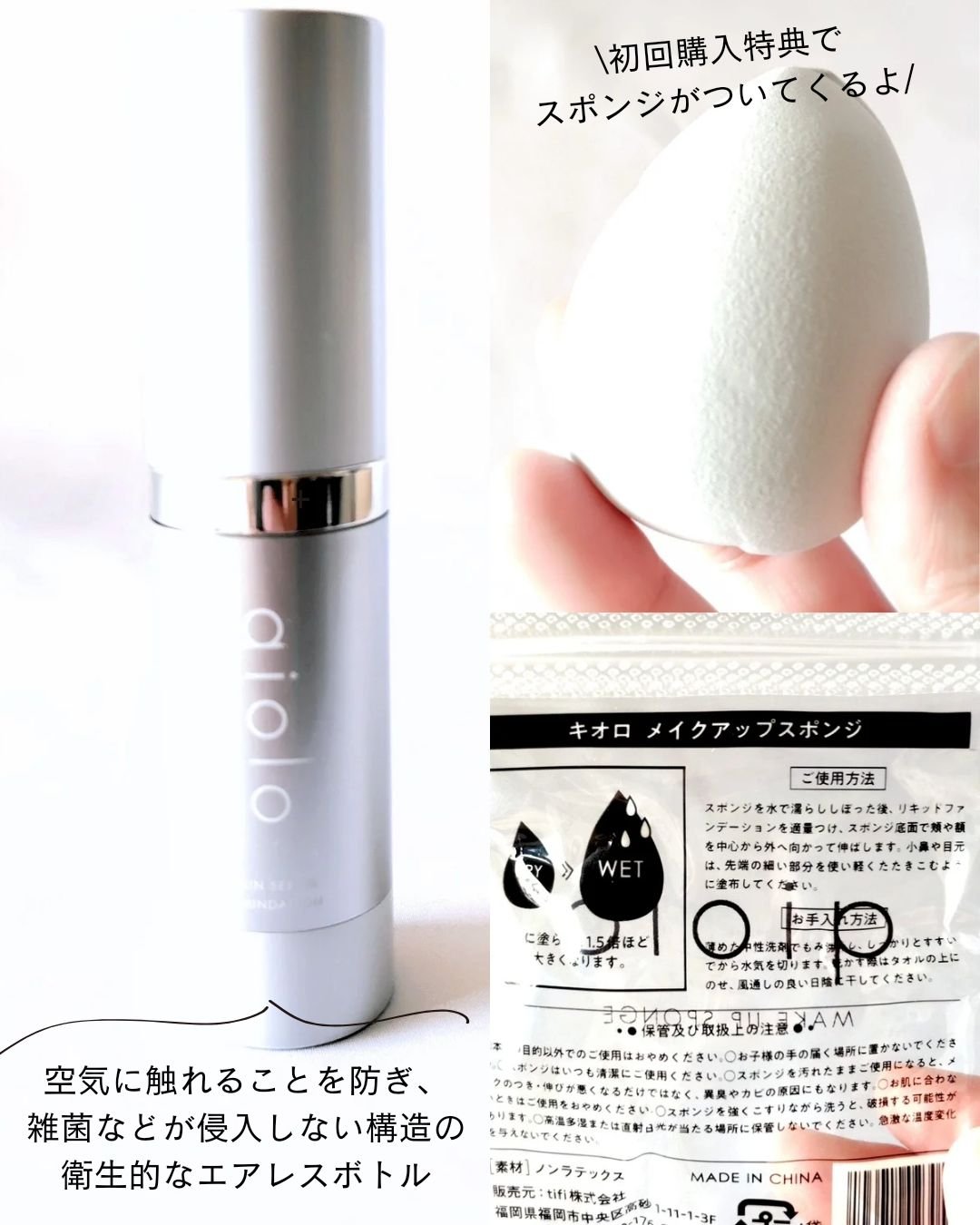 シワ改善×しみ予防*の効果効能が認められた医薬部外品のファンデ♡ エアレス容器で中身を守ってくれるからいつでも新鮮✨生ファンデだよー♡ 肌なじみも良くしっとりしたテクスチャーで私の好きな使用感でした❤︎