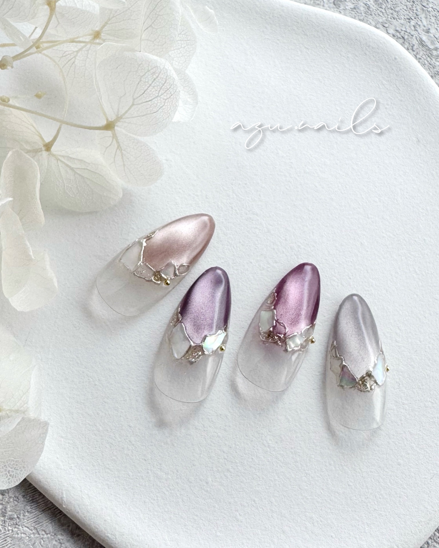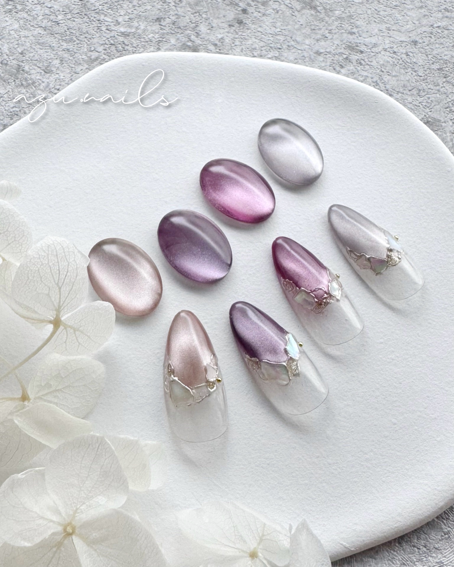 微粒子のマグでみずみずしく繊細な輝きで綺麗系大人っぽいネイルができちゃいます♡ うるうるでぷるんとした立体感がたのしめます😍 発色も良くマグもギュンギュン動いて🙆♀️