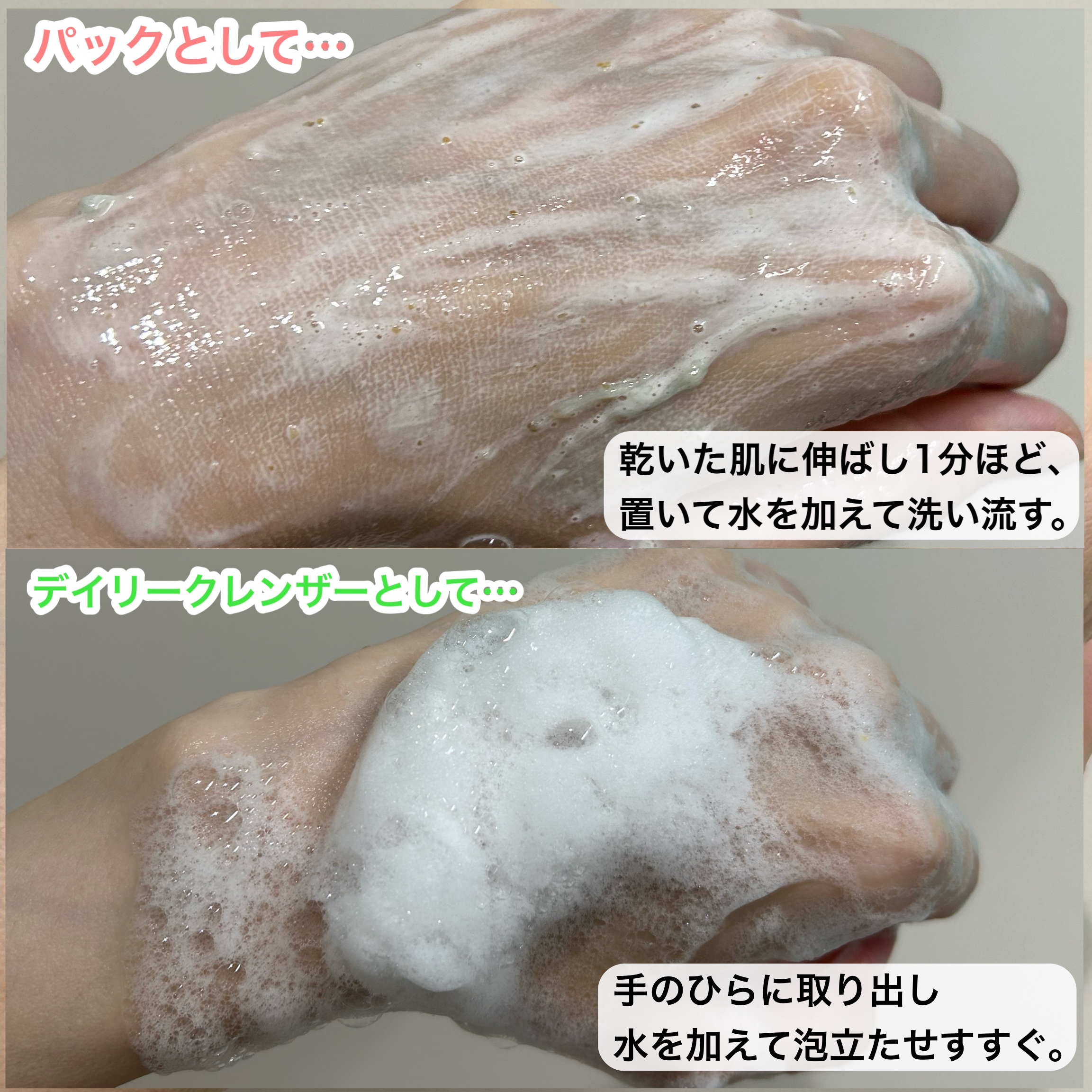 毛穴を綺麗にして鎮静させる新感覚クレンジング❣️ 見た目が可愛くてまた使いたくなっちゃう✨ 少量でも泡立ちよく スクラブだからつるすべに💗 香りも良くて好き🫶 パックにもなるだけあって ツッパリ感もなくていい🫶