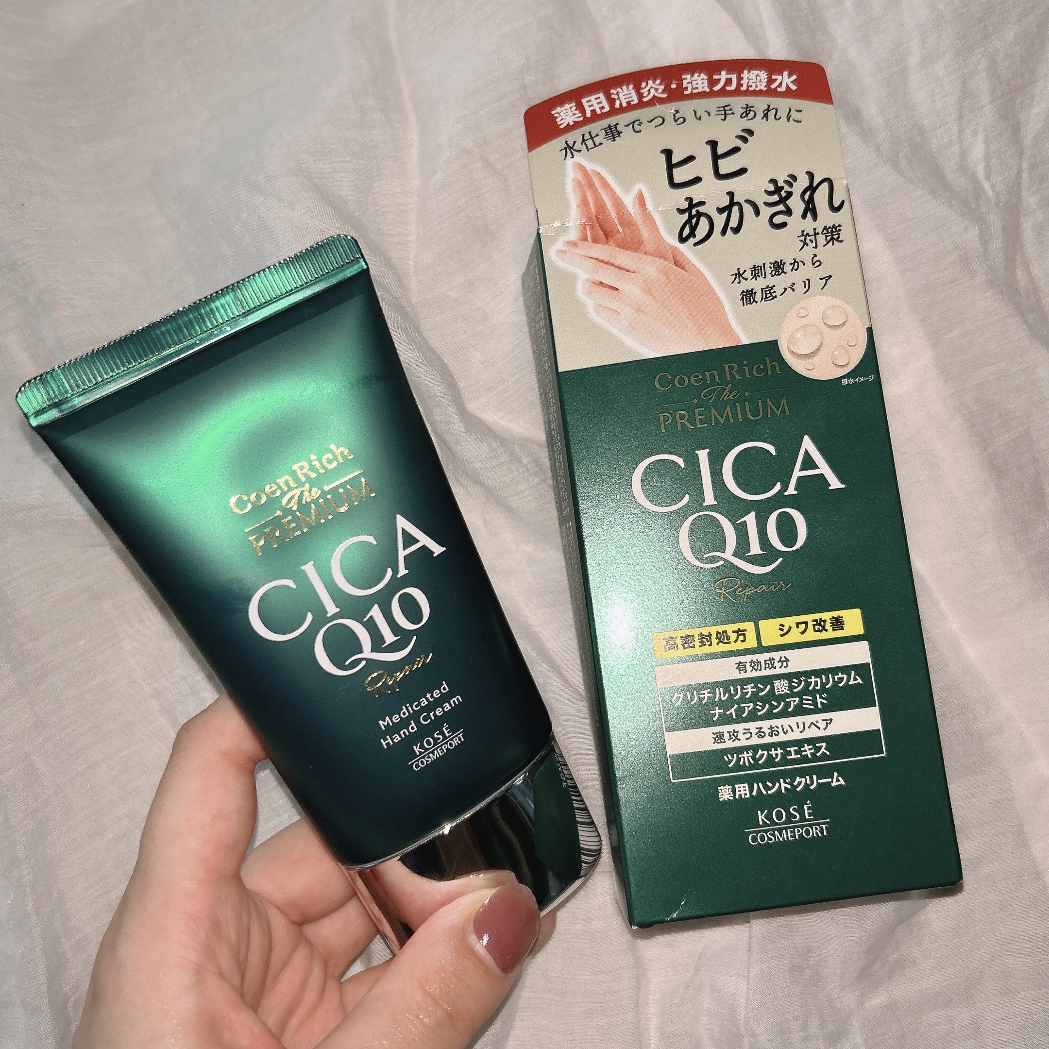 - 薬用CICAリペア ハンドクリーム 薬用消炎×強力撥水効果を備えた手あれ対策する薬用ハンドクリーム。 ヒビ・あかぎれなどの手あれの悪循環から肌をまもり、なめらかな手肌へ。 消炎有効成分 グリチルリチン酸ジカリウム配合。 シワ改善・美白★有効成分ナイアシンアミド配合。 無着色・パラベンフリー ★メラニンの生成を抑え、シミ・ソバカスを防ぐ。