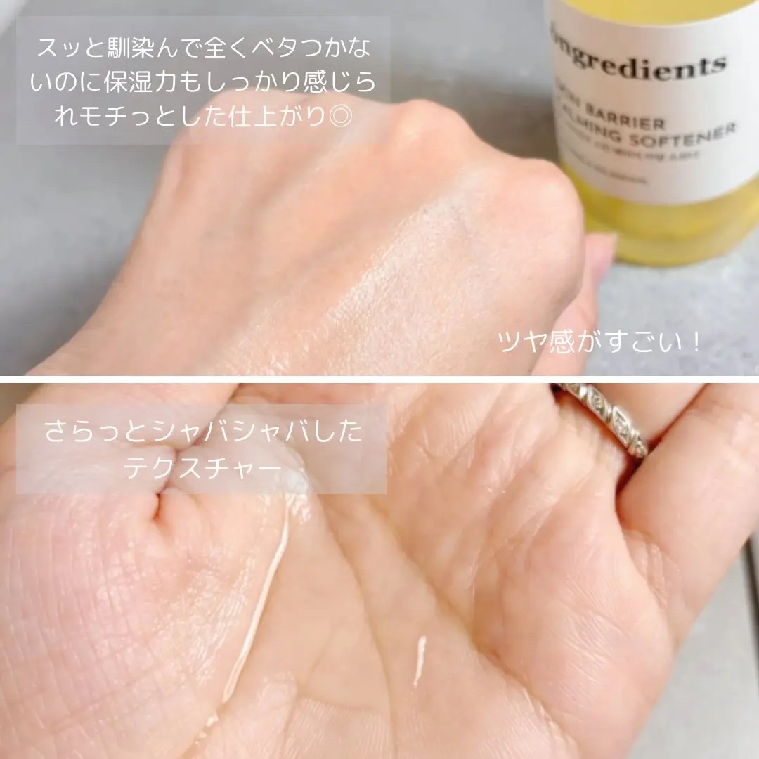 ☑︎オングリディエンツ☑︎スキンバリアカーミングソフナーシャバシャバとした軽いテクスチャで、クセがなくて使いやすい🙆♀️乾燥による肌のカサつきやゆらぎが気になる方も心地よく使えるトナー💡5種の複合ヒアルロン酸(保湿成分)配合で肌にうるおいを...