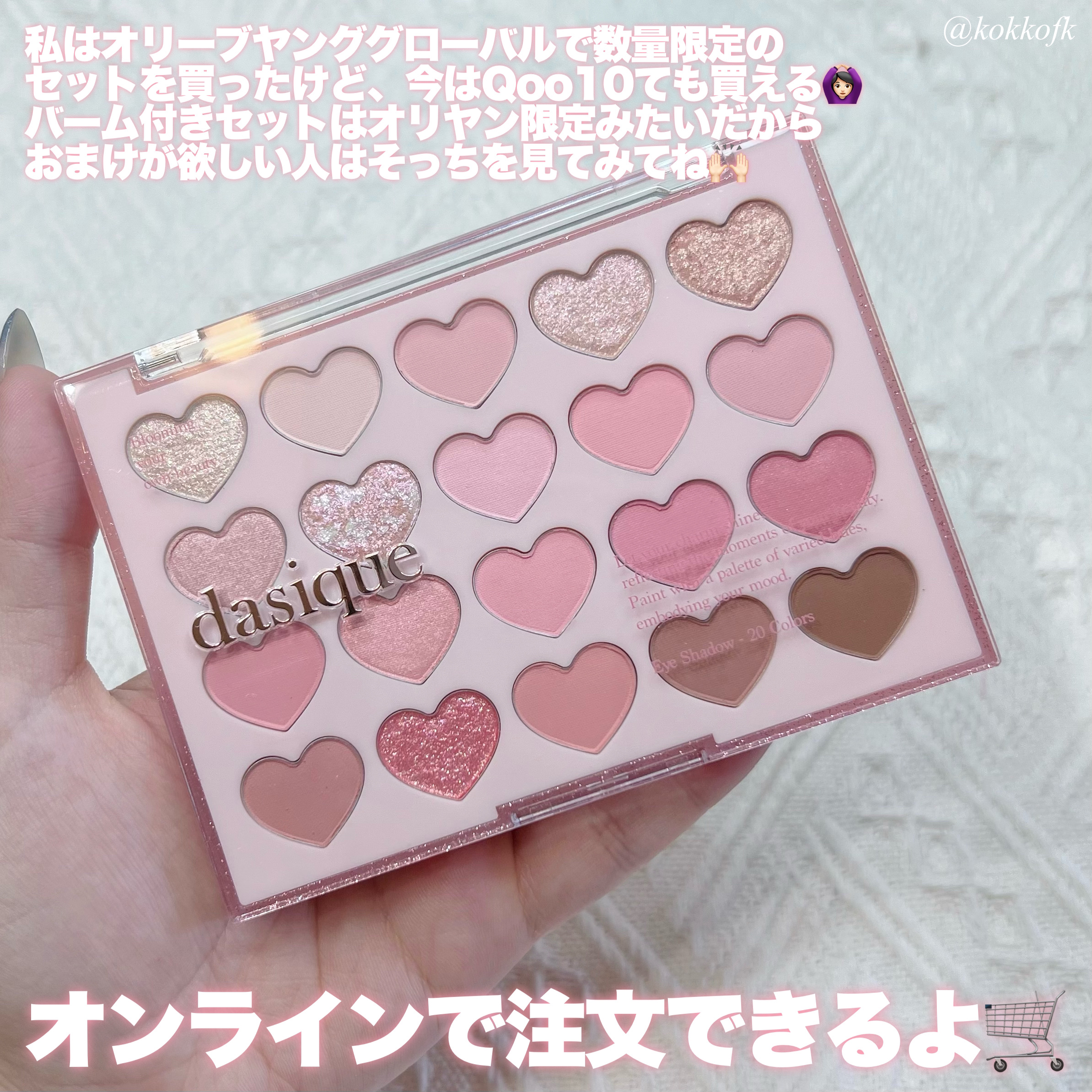 rom&nd────────────ベターザンパレット06 PEONY NUDE GARDEN (¥2900) rom&nd────────────ベターザンアイズ W03 Dry Strawberry (¥1569) HOLIKA HOLIKA────────────マイフェブムードアイパレットMOONY (¥2050) HOLIKA HOLIKA────────────マイフェブムードアイパレットPINK OLOGY (¥2050) CLIO────────────プロ アイ パレット13 PICNIC BY THE SUNSET (¥2390) PERIPERA────────────オール テイク ムード パレット04 MUTEFUL ROSE (¥1590) PERIPERA────────────オール テイク ムード パレット09 MOONLIKE LAVENDER PINK (¥1590) PERIPERA────────────インク ポケット シャドウ パレット05 TOUCHING TARO STARS (¥1190)