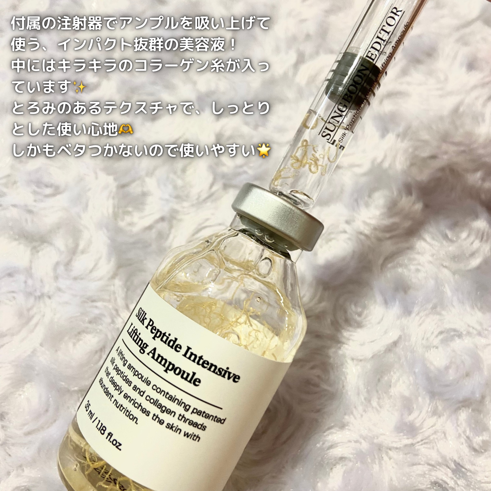 SUNGBOONEDITORシルクペプチドインテンシブリフティングアンプル35ml2900円(税込)※Qoo10価格まるで塗る糸リフト?韓国で話題のリフティングアンプル✨高濃度*シルク&ペプチド13種と金色のコラーゲン糸が配合💛とろっとしたテ...