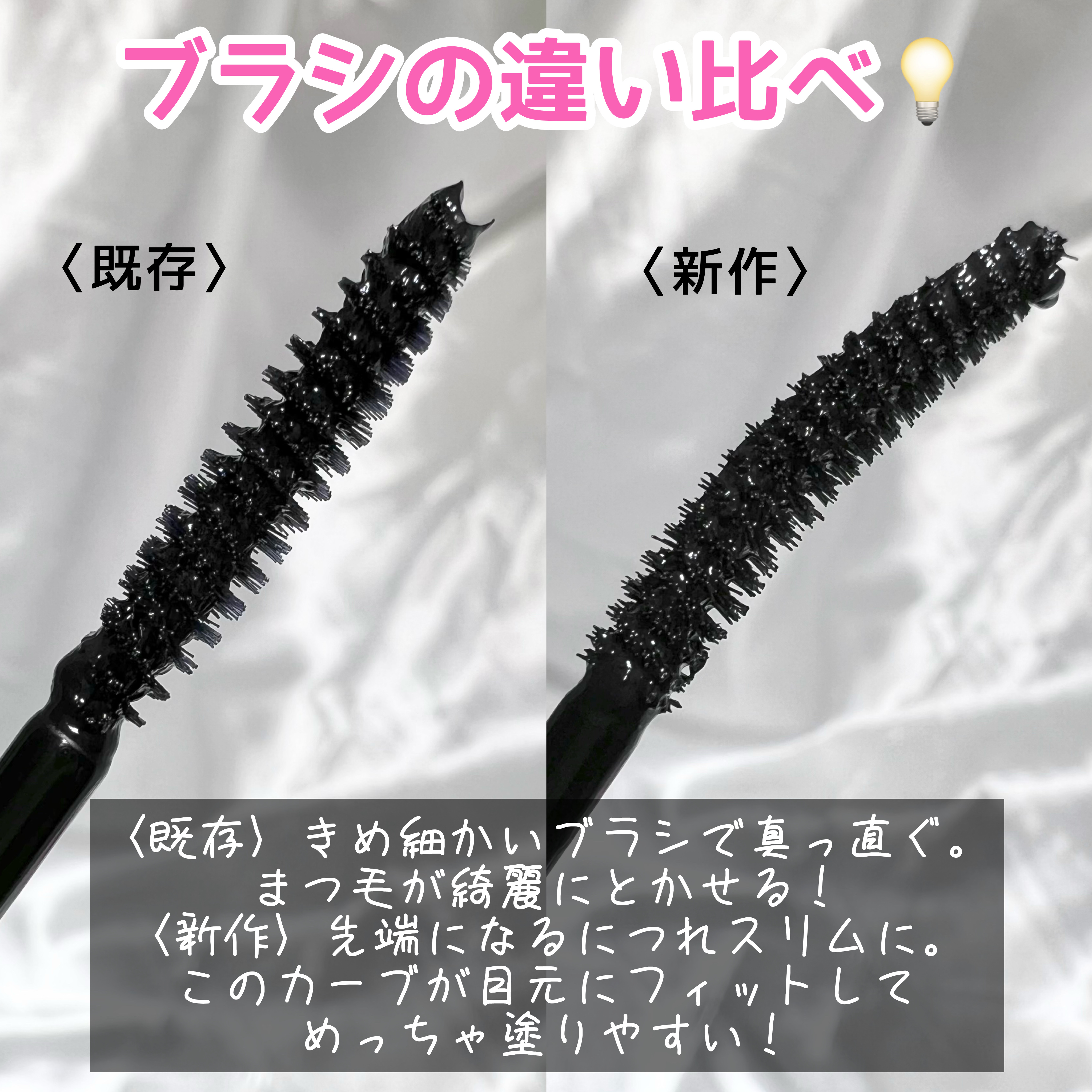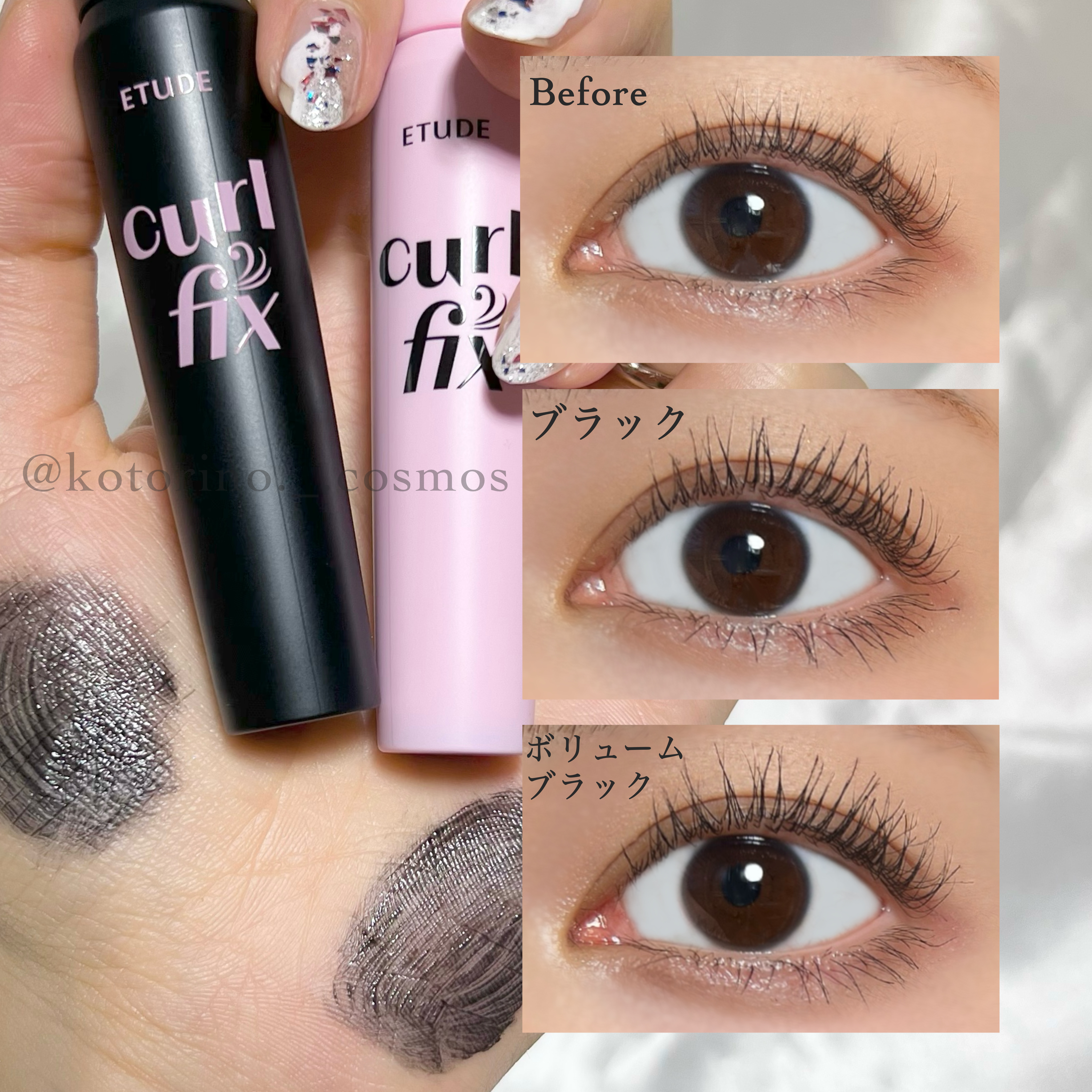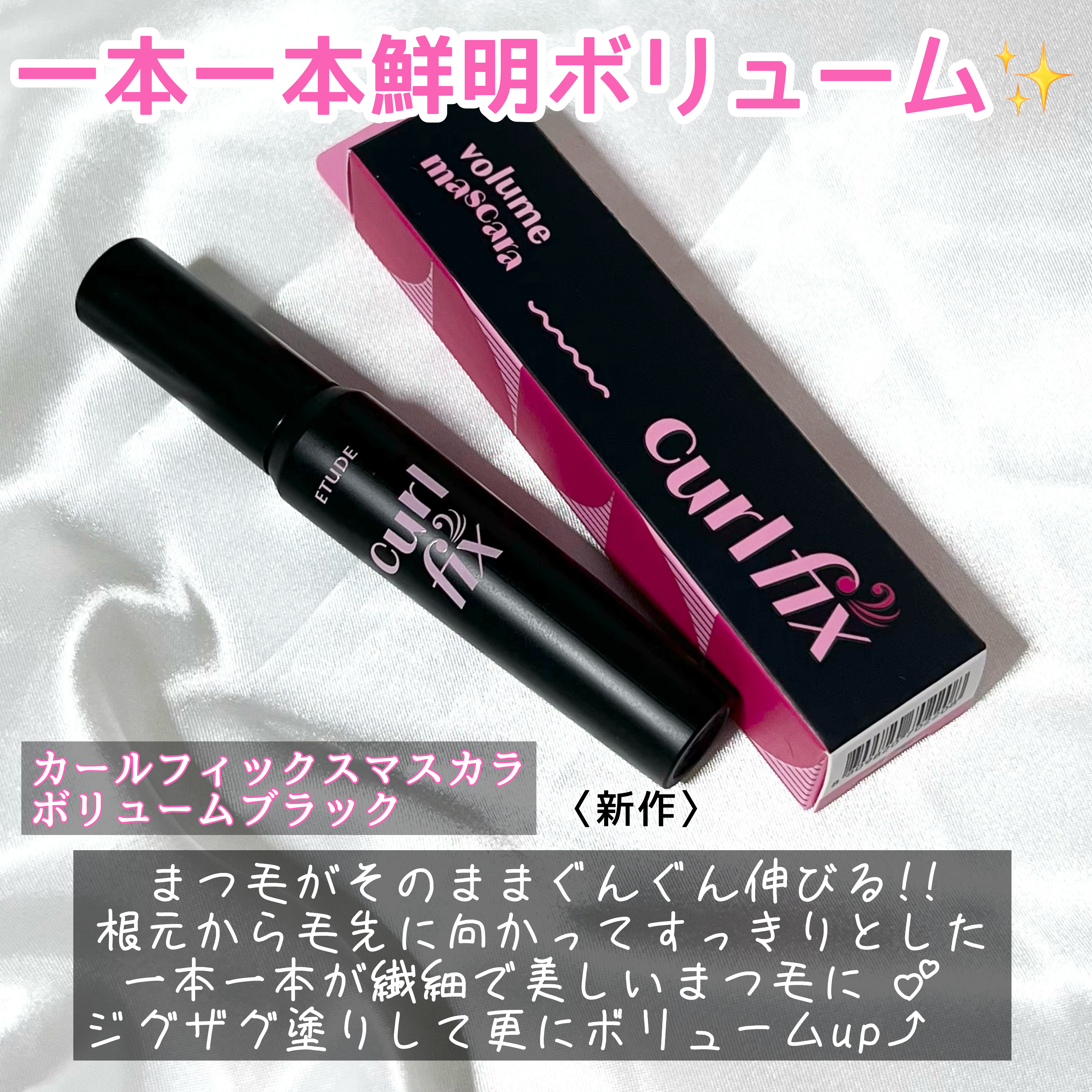 今回ETUDEカールフィックスマスカラ ブラックとカールフィックスマスカラボリュームブラックをご紹介します。ピンクの方は綺麗な束感まつげに仕上がります。ダマもできにくく、束感できる成功率が高いと思います。ボリュームタイプでも束感を作れますが、...
