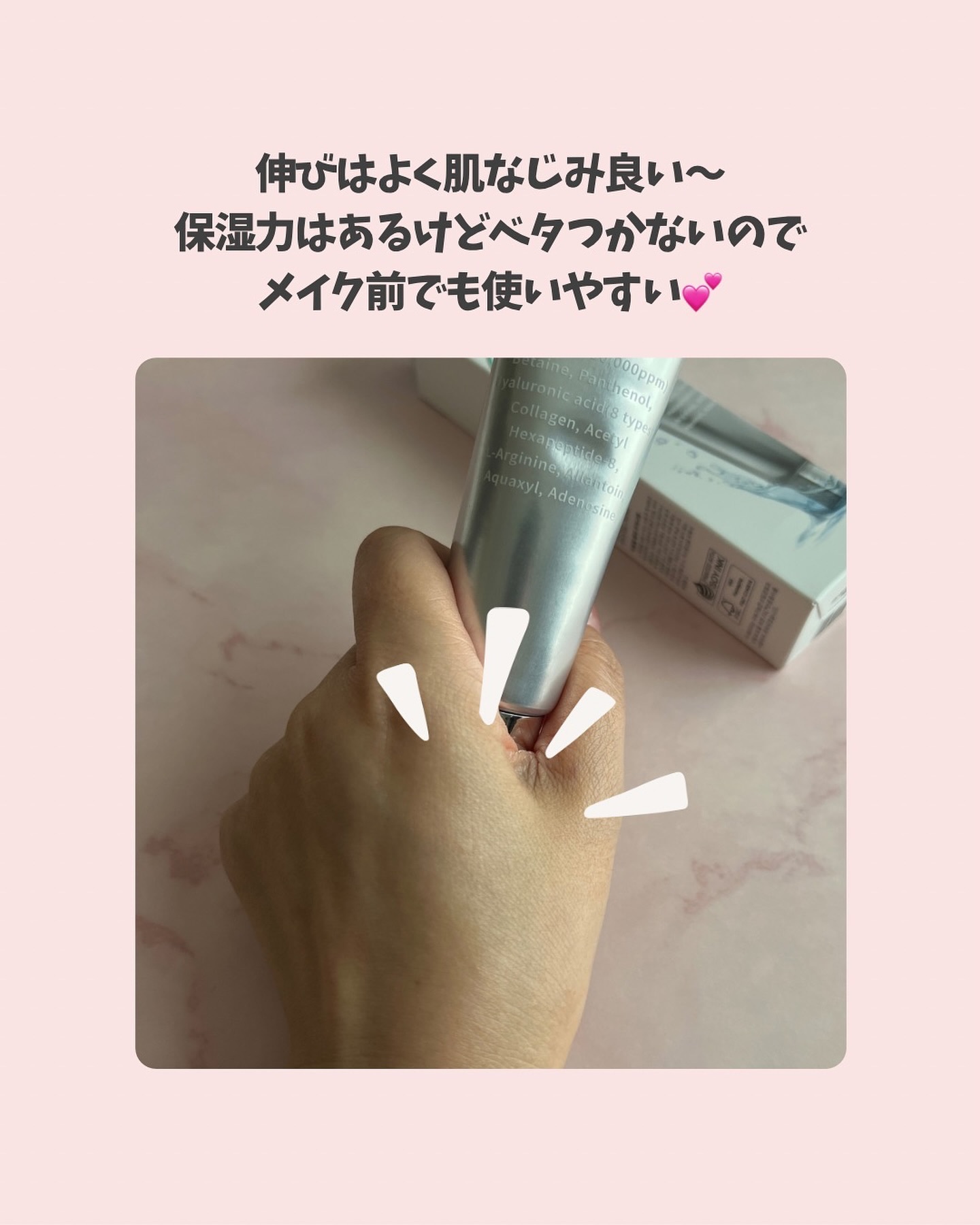 お肌に塗るビタミンB5、水分を引き寄せて保持する性質を持つパンテノー11,250ppm配合😍 薄付きでうるおいとツヤがほしい、そんな方にホントおすすめ💡 夕方にはカサカサなることが多いけどこれはそんなに気にならんやった🤭 軽い密着感を探してる ✅ツヤ感が維持されるものがいい ✅厚塗り感が出ないものがいい ✅乾燥がとても気になる