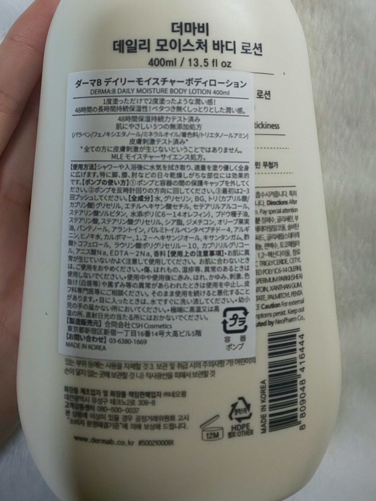 商品詳細情報Derma:B デイリーモイスチャーボディローション