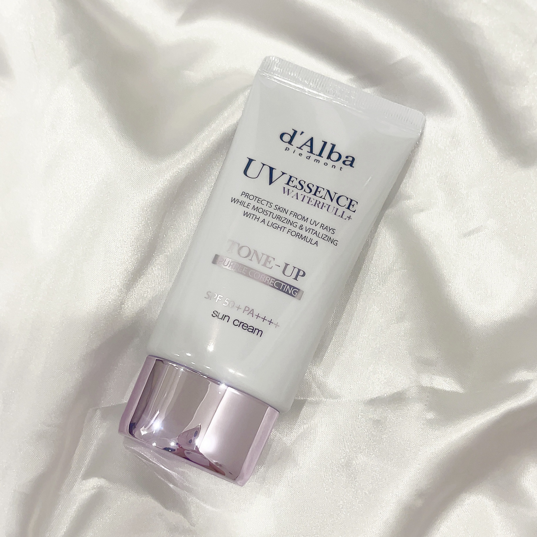 ダルバ ウォータフル トーンアップ サンクリーム パープルはかなりしっかりめにトーンアップしてくれます◎ カラーはブルベ向きの色です! ダルバ ウォータフル トーンアップ サンクリーム ピンクはイエベ、ブルベどちらもOKなので何を買うか悩んでいる方にはこれがおすすめ! ダルバ ウォータフル エッセンス サンクリームは下地としてではなく日焼け止めとして使用します。無色なので首などの全身塗れます!