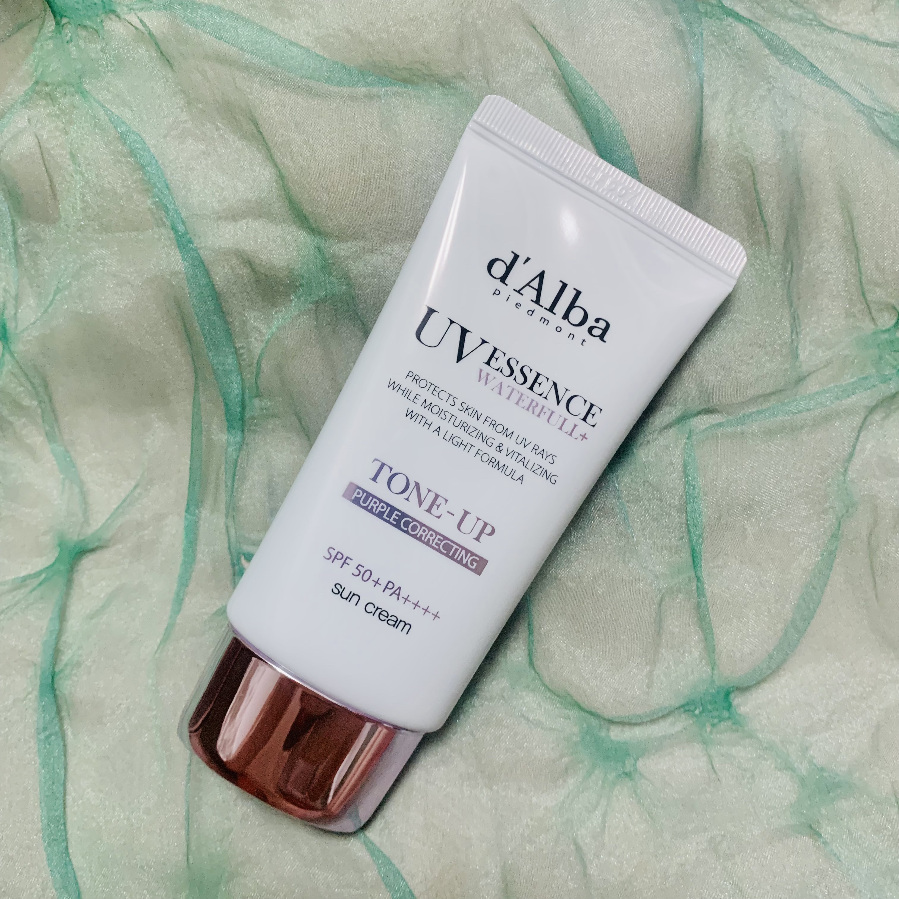 @dalba_japanウォータフルトーンアップサンクリーム一本でベースメイク完成するd'Albaの色で選べる日焼け止め3種・ピンク血色感を出したい時、ナチュラルに仕上げたい日初心者向けのアイテム・パープル補色効果で黄ぐすみを抑えトーンアッ...