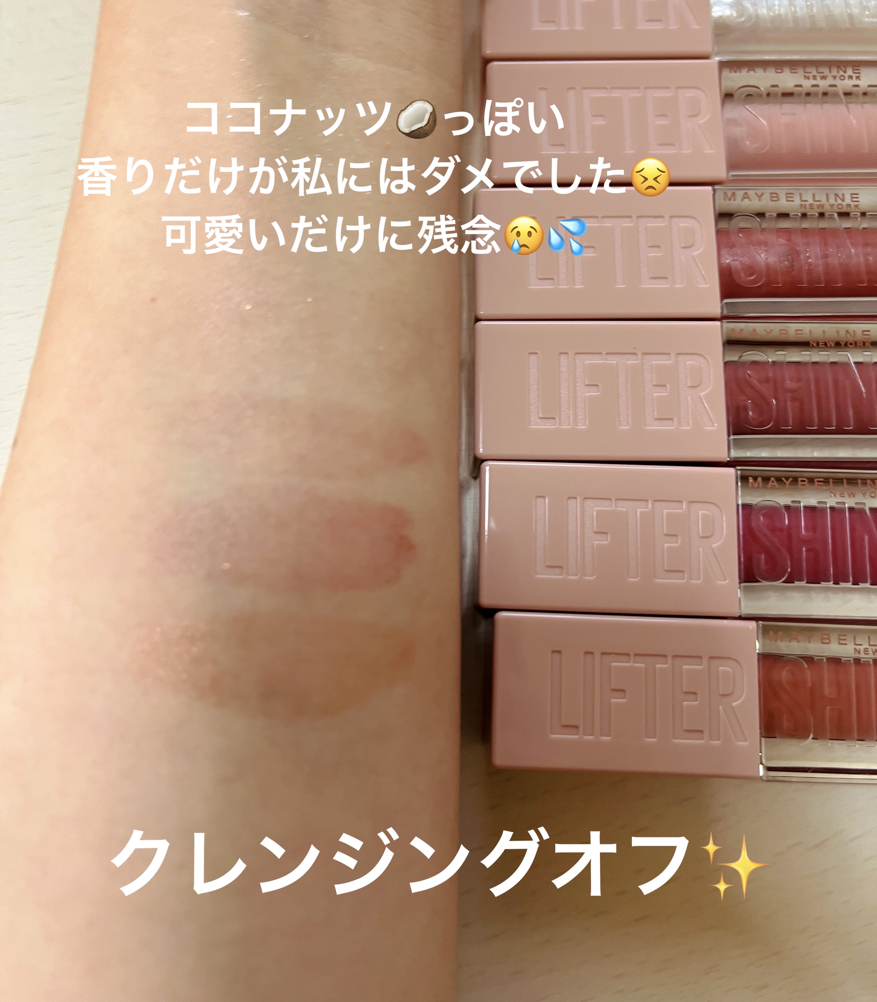 MAYBELLINENEWYORKリフターシャインをレビューします!お色味は003ベリームーンです。薄ピンクの中にシルバーのラメが混ざっていて、めちゃくちゃ可愛いです💕以前にレビューした004よりもラメがしっかりと入っていて、塗った後もキラキ...