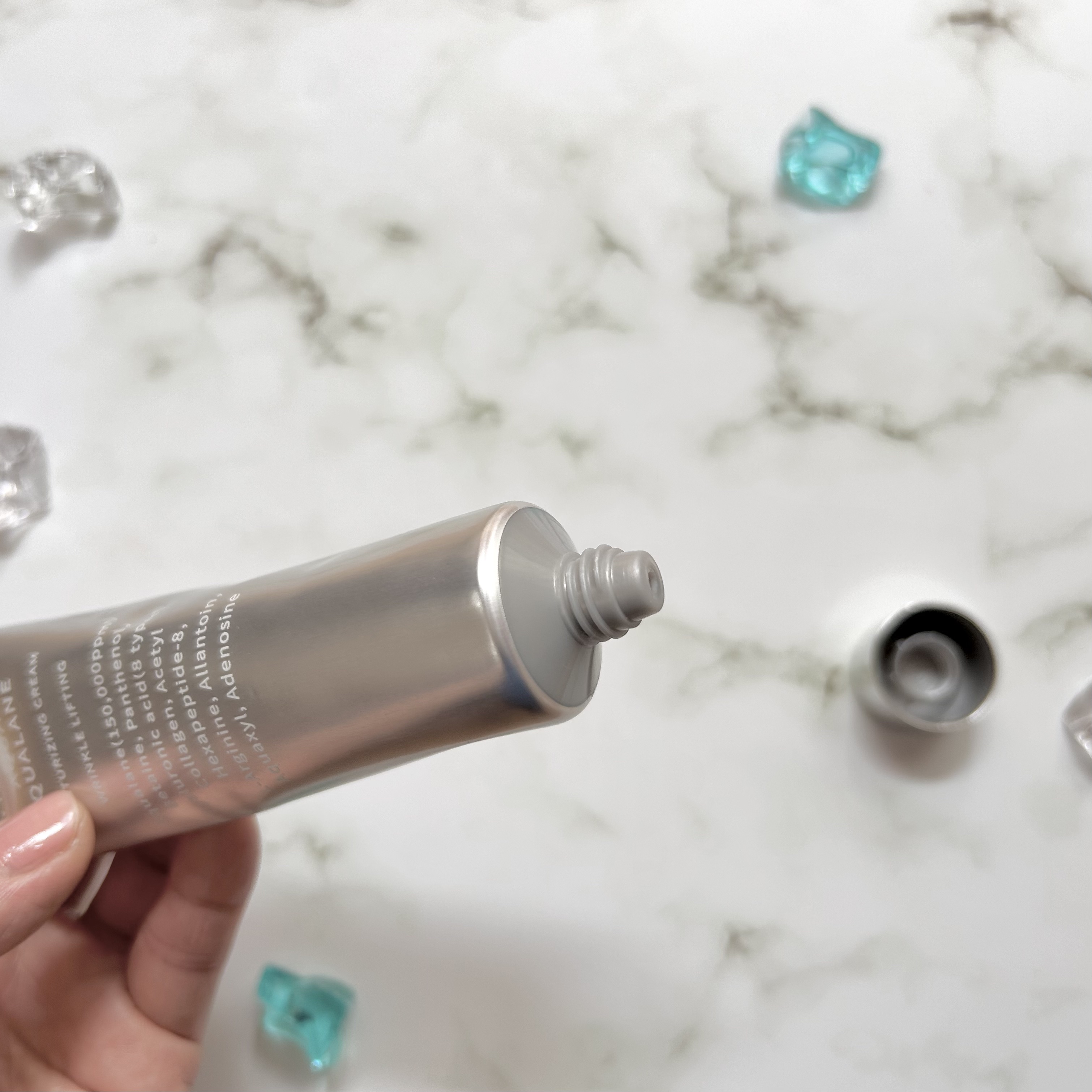 - <60ml> 水、スクワラン、グリセリン、1,2-ヘキサンジオール、ベタイン、BG、パンテノール、アルギニン、(アクリロイルジメチルタウリンアンモニウム/VP)コポリマー、(アクリレーツ/アクリル酸アルキル(C10-30))クロスポリマー、キシリチルグルコシド、アデノシン、無水キシリトール、キシリトール、ヒアルロン酸Na、アラントイン、加水分解コラーゲン、ヒアルロン酸ヒドロキシプロピルトリモニウム、グルコース、カプリリルグリコール、アセチルヒアルロン酸Na、加水分解ヒアルロン酸、アセチルヘキサペプチド-8、ヒアルロン酸、ヒアルロン酸クロスポリマーNa、加水分解ヒアルロン酸Na、ヒアルロン酸K