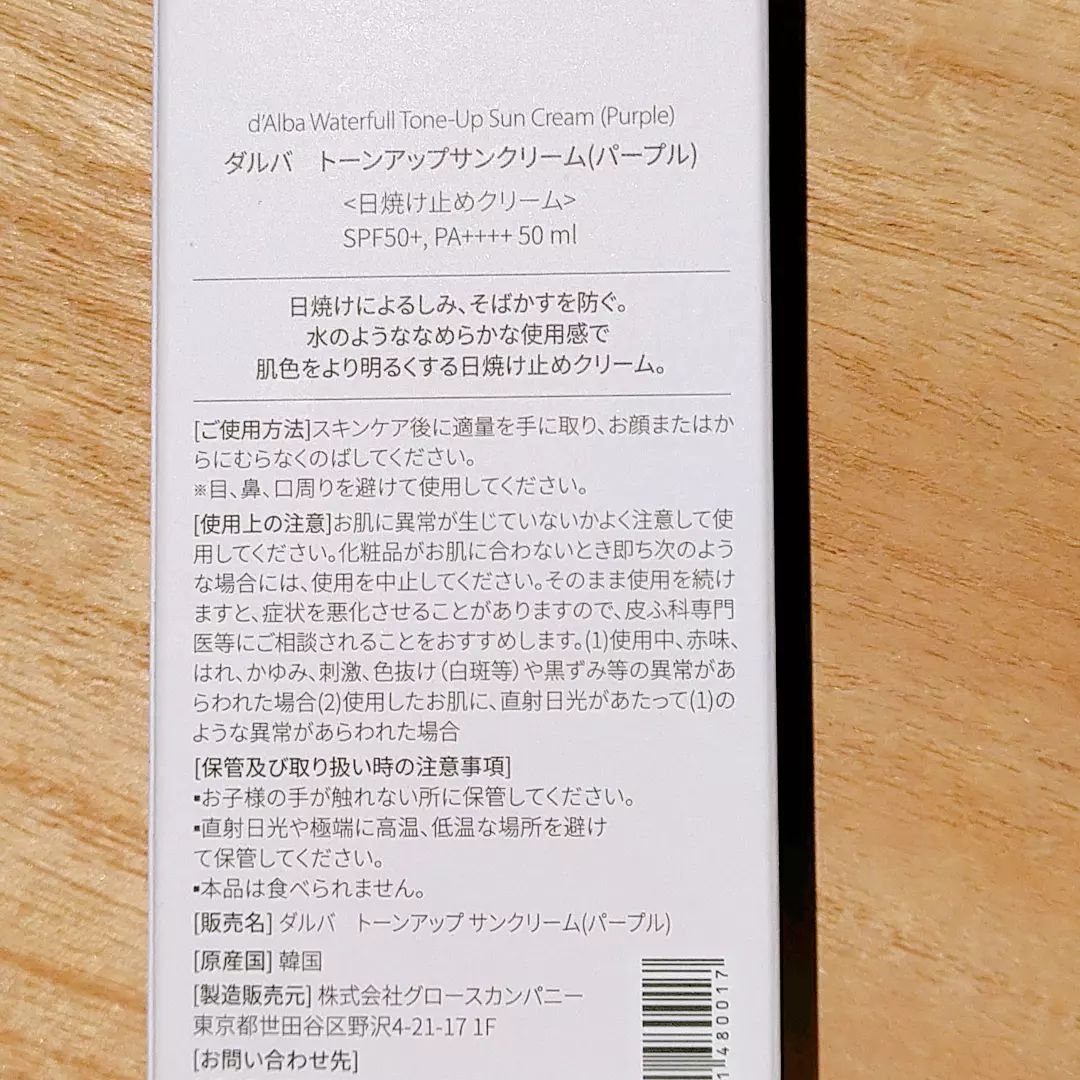 商品詳細情報ダルバ ダルバ ウォータフル トーンアップ サンクリーム(パープル)
