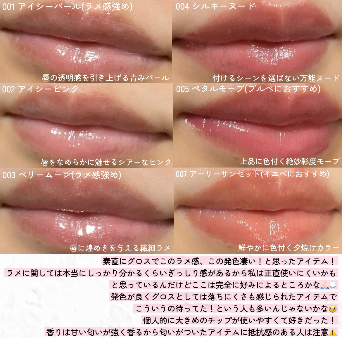 | 口紅・グロス・リップライナーランキング第51位 | もったりしてるけどベタつかないようなテクスチャーです!大きめのアプリケーターも使いやすかったです! | 詳細を見る | |