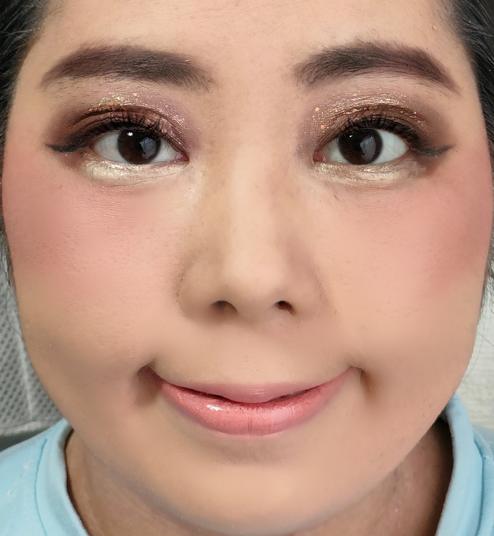 アイシャドウパレットは、URGLAM UR GLAMBLOOMING EYE COLOR PALETTE 02を、使用しました。 マスカラは、MAYBELLINE NEW YORK コロッサルボリュームエクスプレスを、まつ毛全体にまんべんなく塗ります。 リップは、wet 'n' wild MegaLast Lip Colorを、唇全体にまんべんなく塗ります。