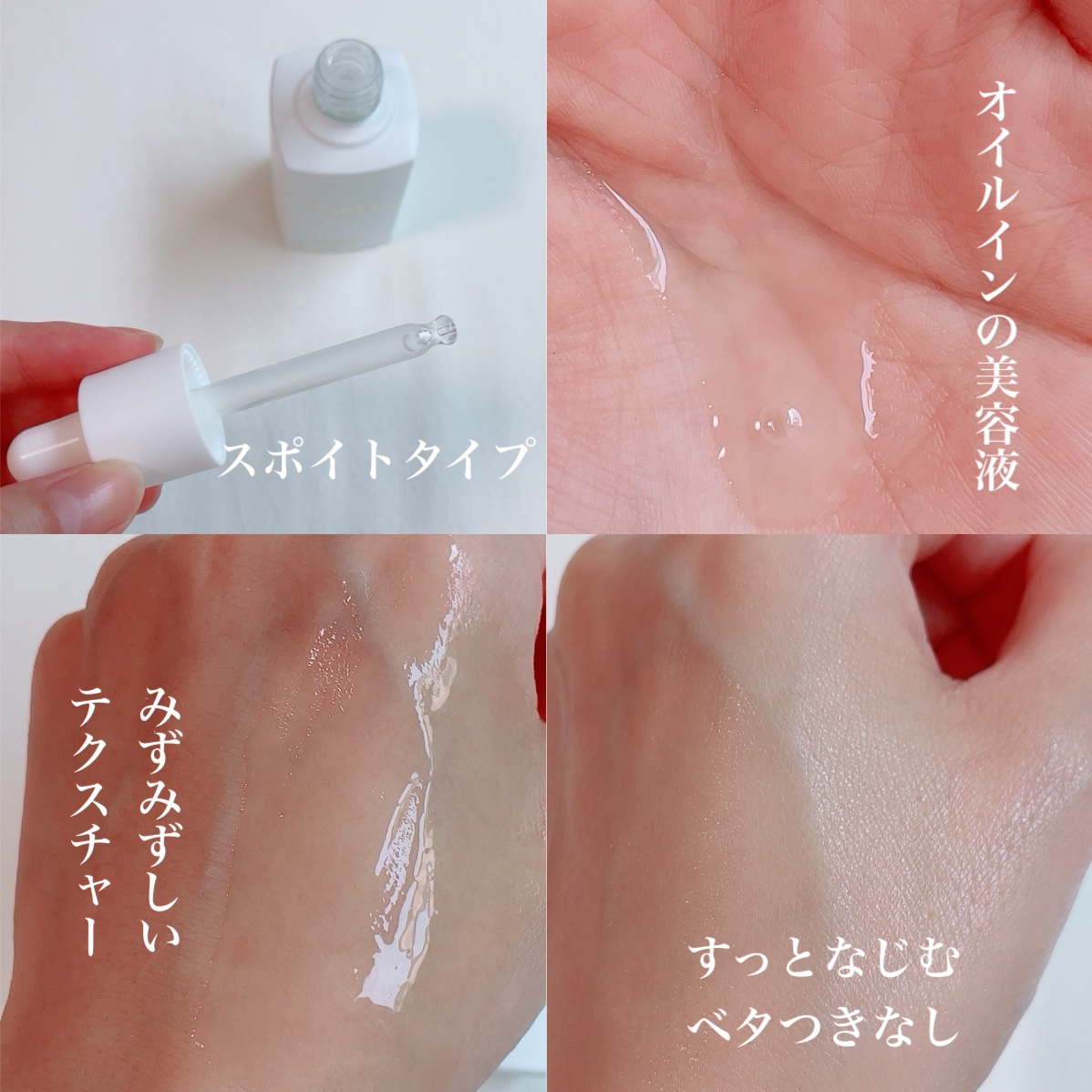 高分子ヒアルロン酸とナルシス(水仙)、マグノリアのエキスが保水性をサポート。うるおいで満たし、肌のキメを整えて、なめらかな手触りと輝きのある肌印象へと導く【公式参考】 たっぷりのオイル配合なのにベタつきはないみずみずしいつけごごち…!なめらかなテクスチャーと広がる優雅な香りがなんとも心地いい使用感♡ やわらかいしっとり感も好きだけど肌あたりが優しいところが好きだなぁ